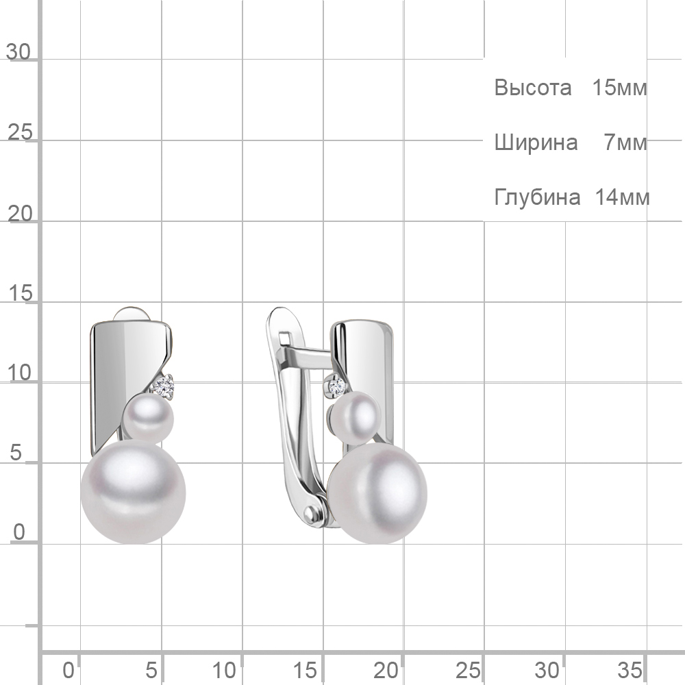 49325А Серьги из Серебра с культ. жемчугом аа, фианитами
