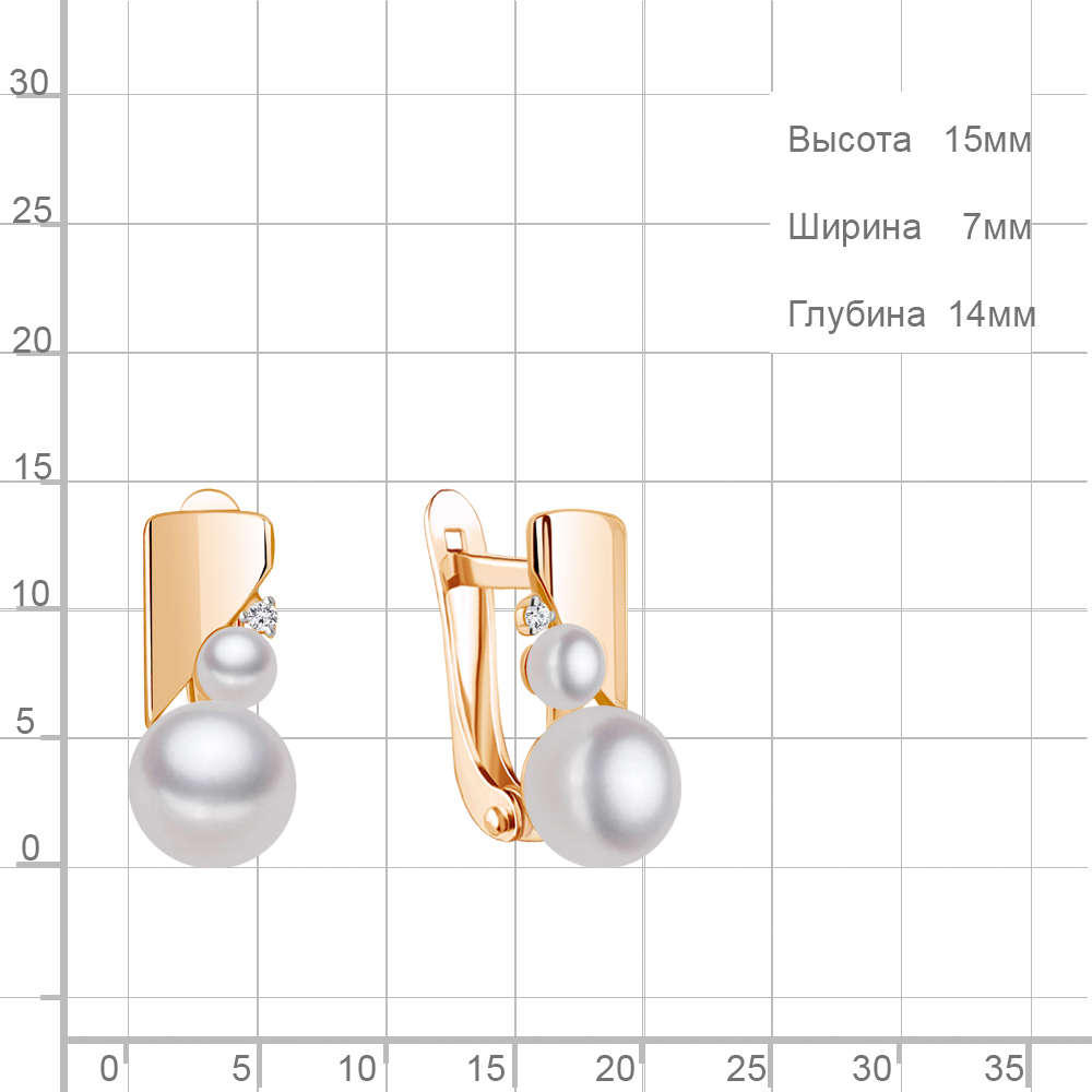 Описание камней 2 Фианит; 2 Культ. Жемчуг АА; 2 Культ. Жемчуг АА