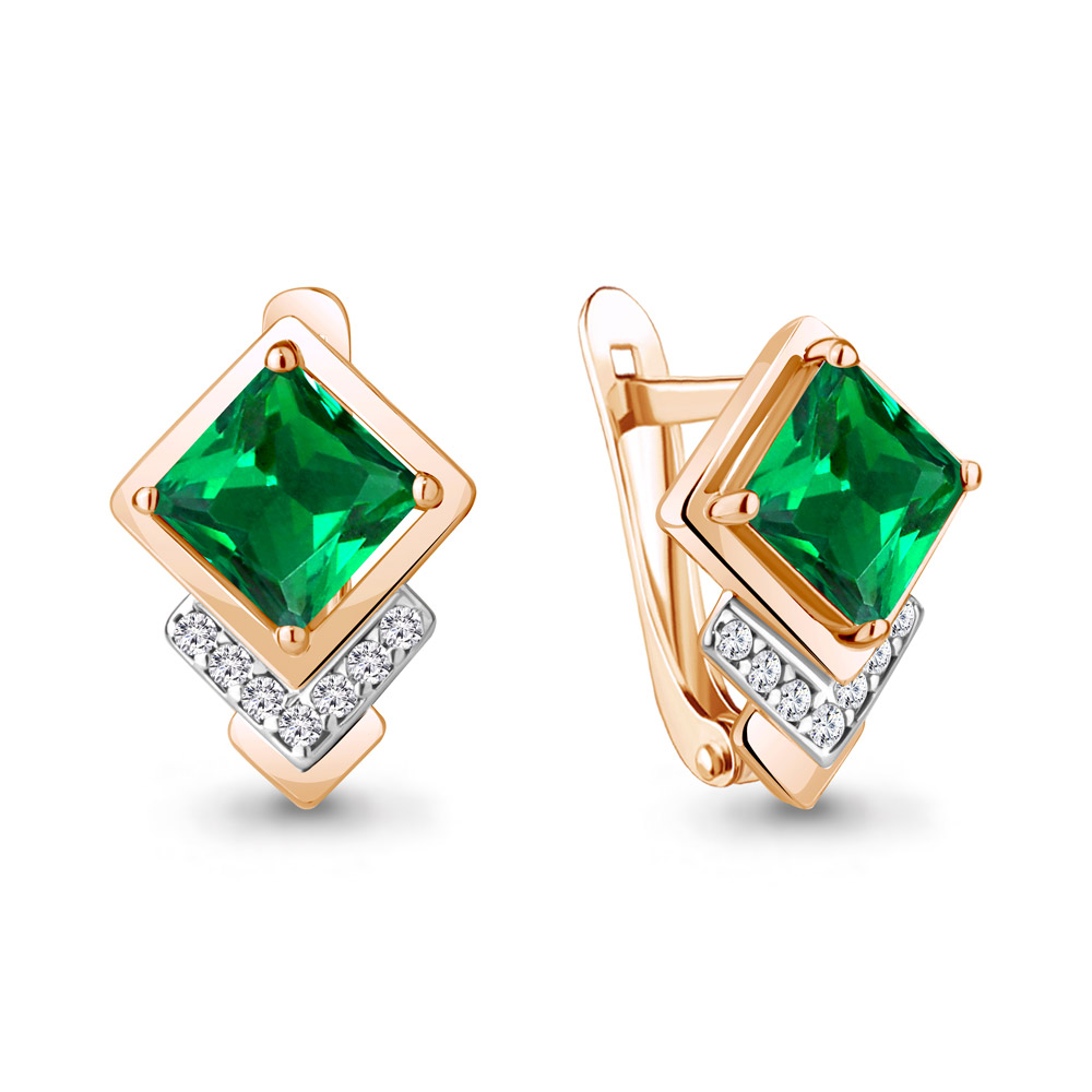 49370АГ Серьги из Серебра с наноизумрудами, фианитами из коллекции "Клеопатра"
