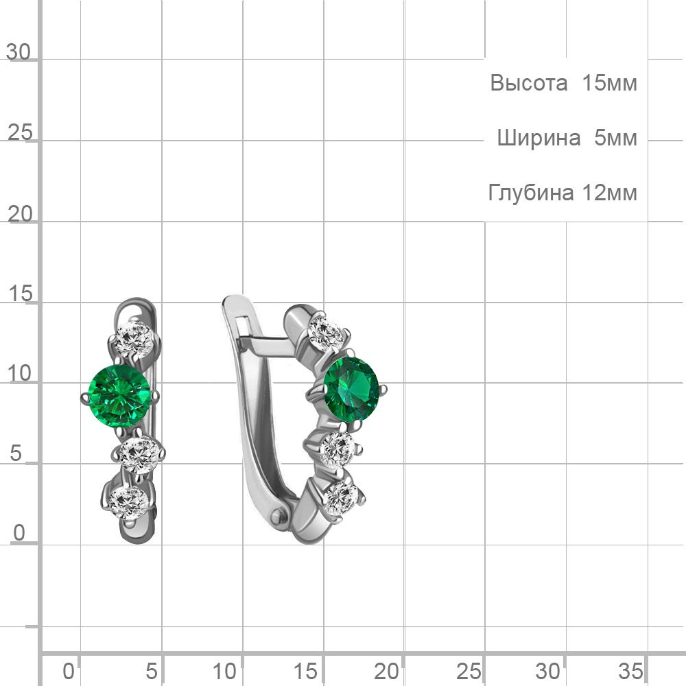 49371АГ Серьги из Серебра с наноизумрудами, фианитами