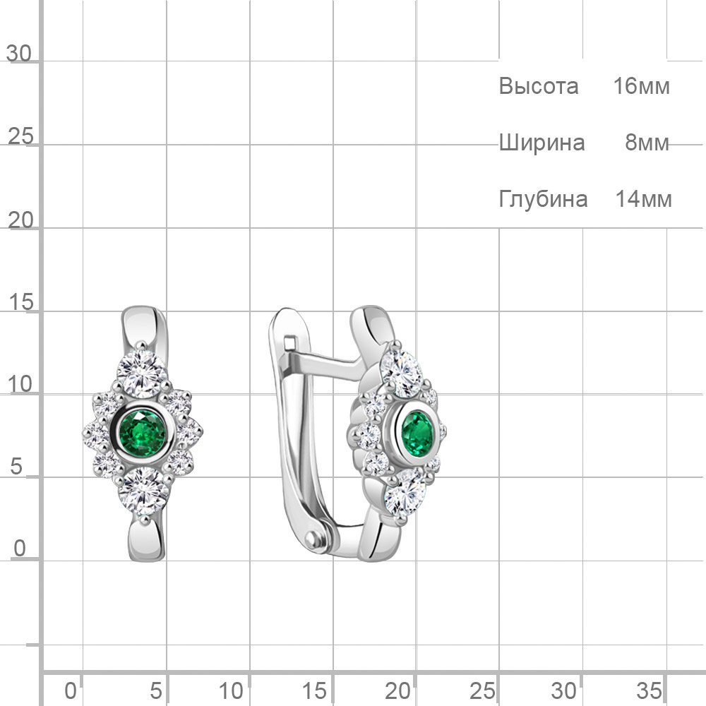 49459АГ Серьги из Серебра с наноизумрудами, фианитами из коллекции "Клеопатра"