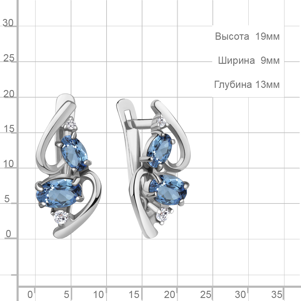 4961305А Серьги из Серебра с топазами свисс блю, фианитами