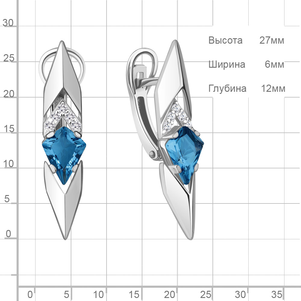 4964893А Серьги из Серебра с нанотопазами лондон, фианитами