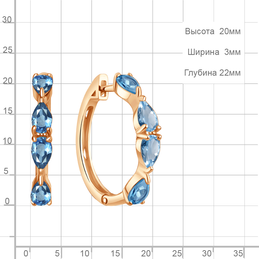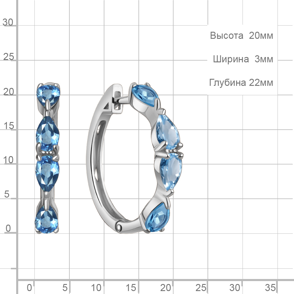 4965205 Серьги из Серебра с топазами свисс блю