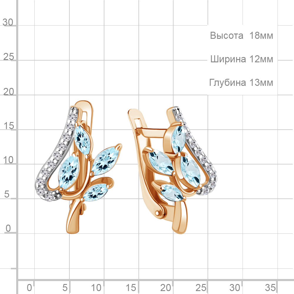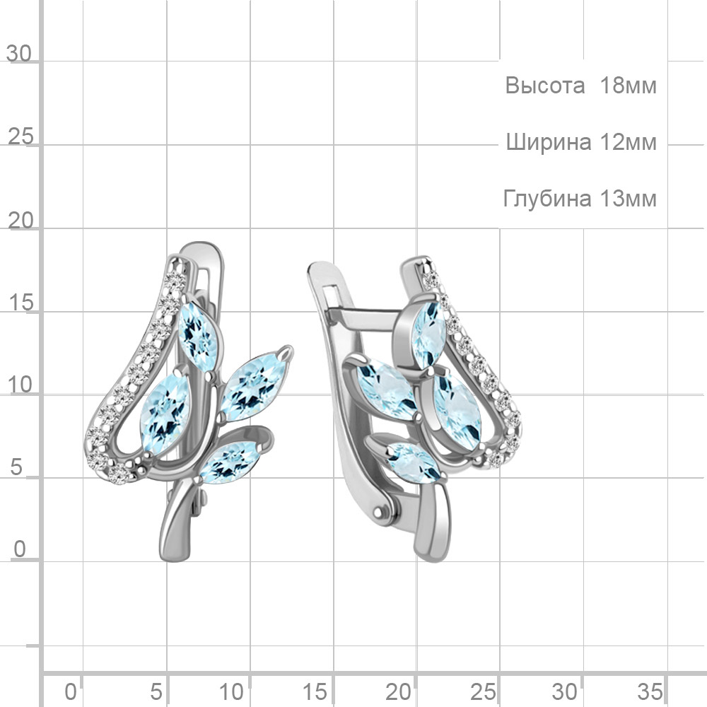 4967402А Серьги из Серебра с топазами скай блю, фианитами