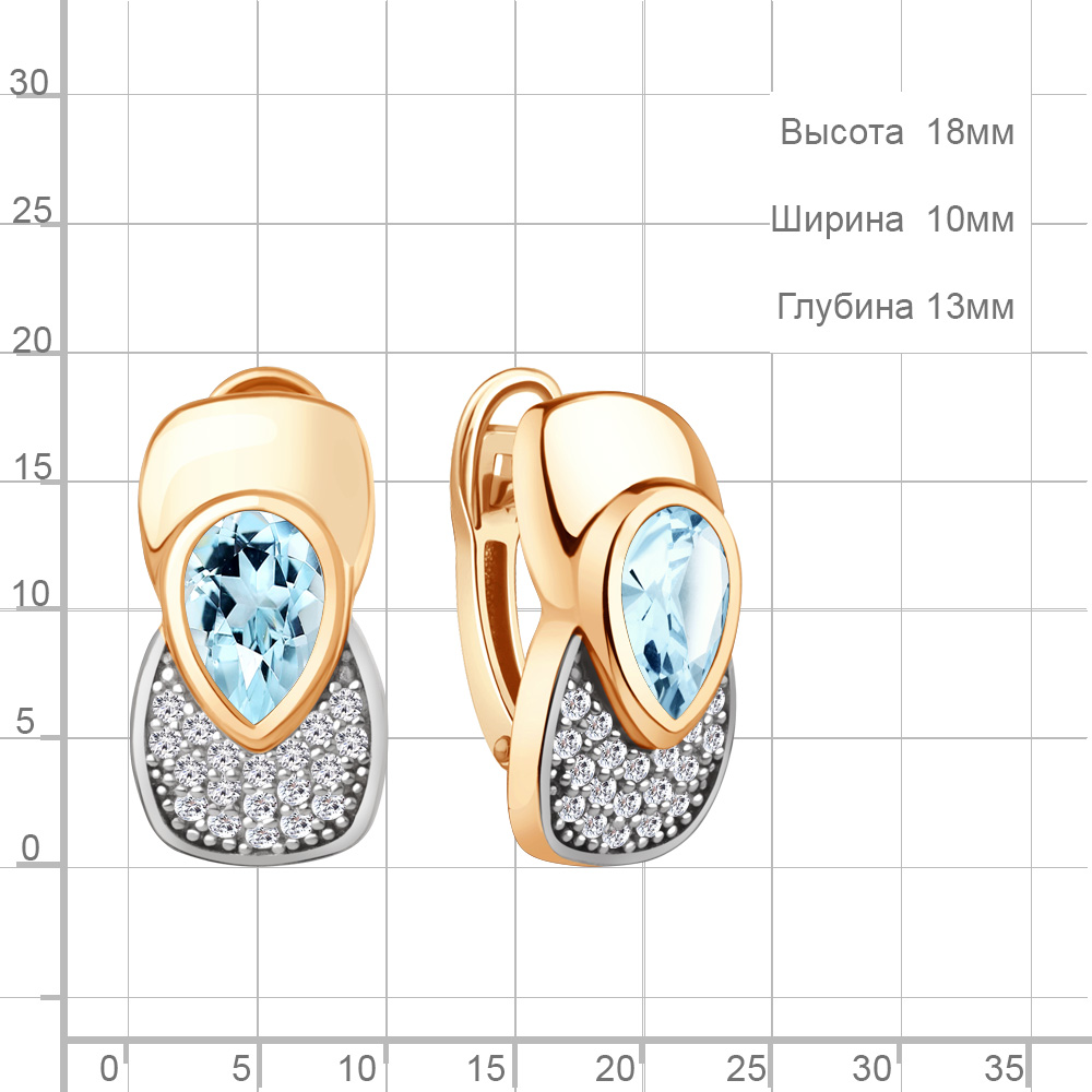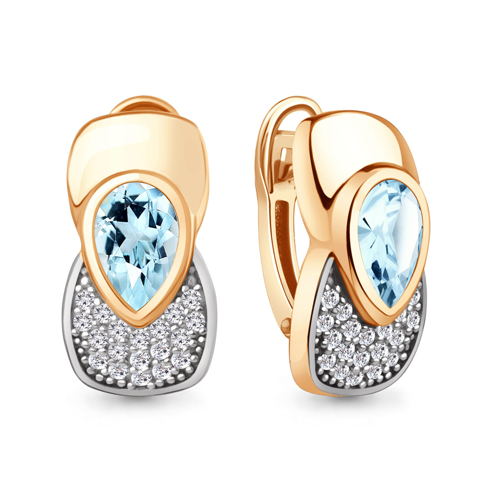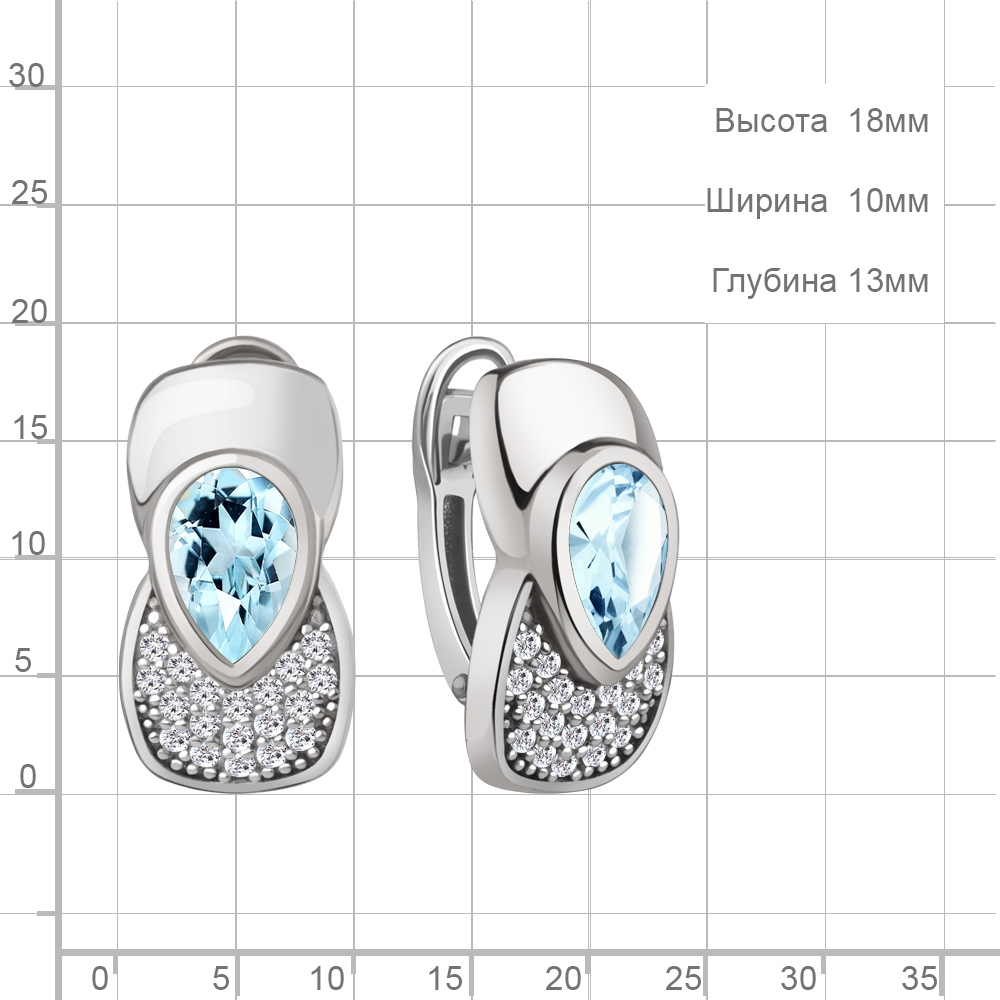 4969302А Серьги из Серебра с топазами скай блю, фианитами