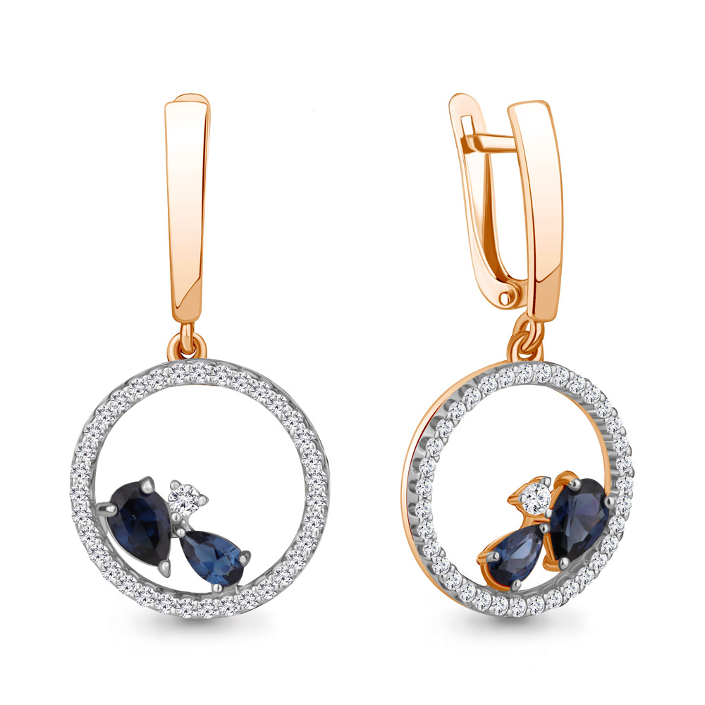49743АБ Серьги из Серебра с наносапфирами, фианитами из коллекции "Клеопатра"