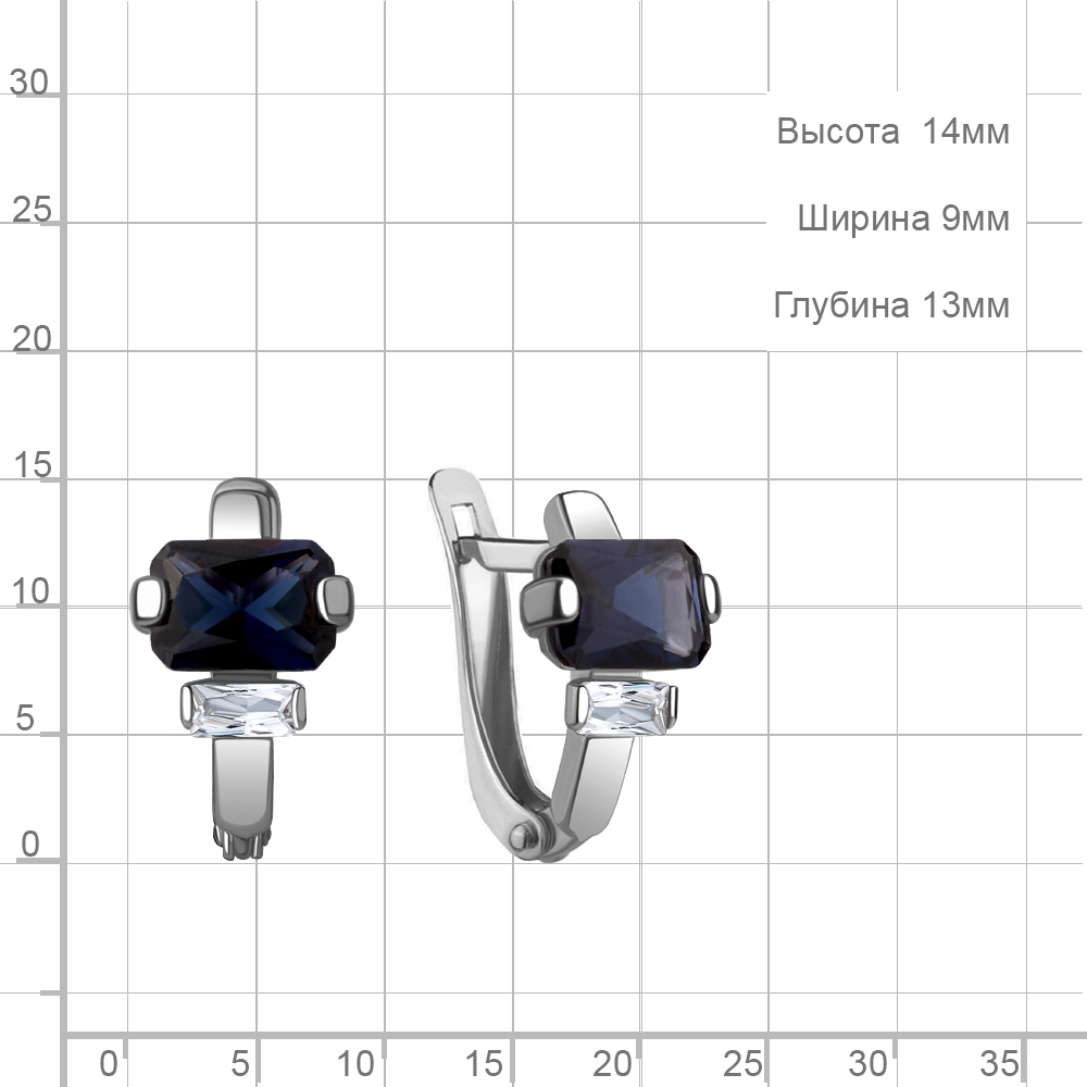 49814Н Серьги из Серебра с наносапфирами, фианитами из коллекции "Клеопатра"