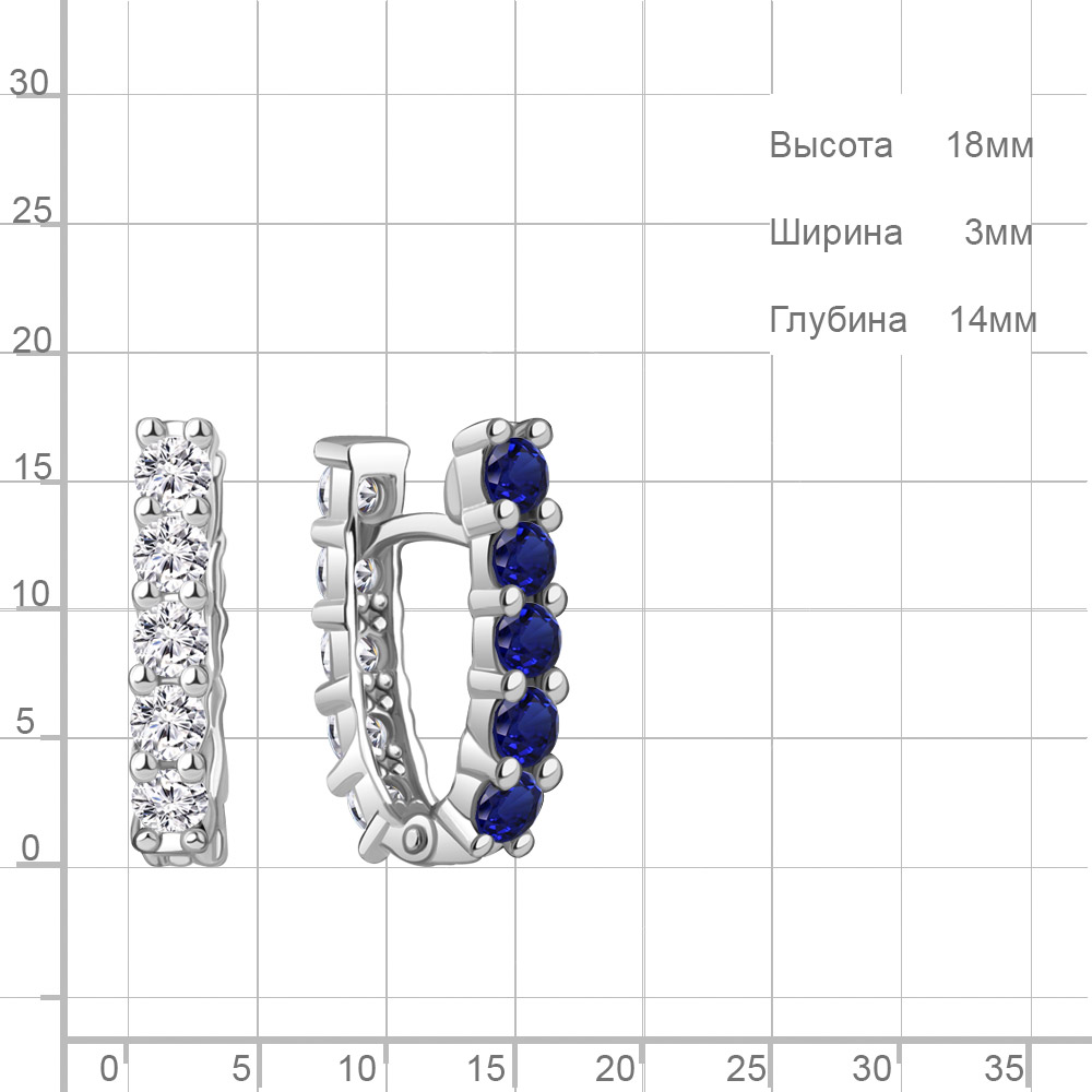 49851АБ Серьги из Серебра с наносапфирами, фианитами из коллекции "Клеопатра"