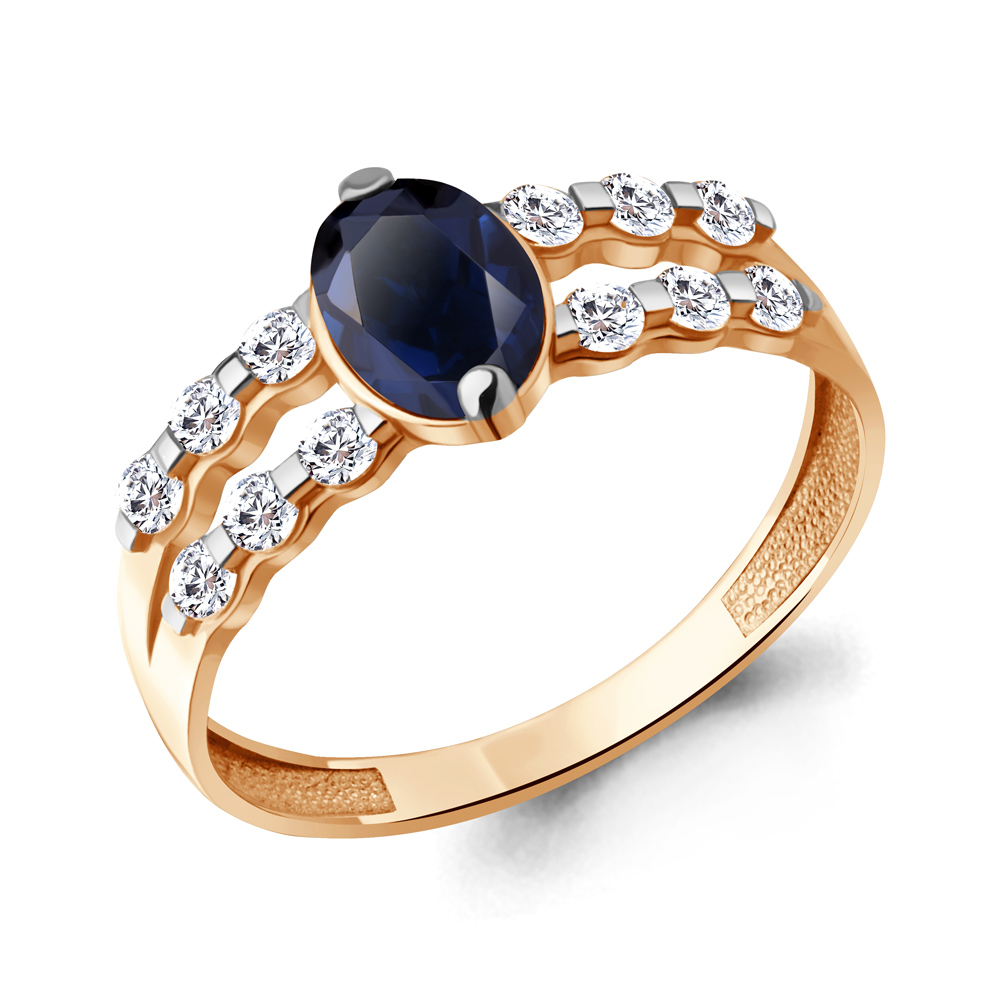 600067АБ Кольцо из Серебра с наносапфиром, фианитами