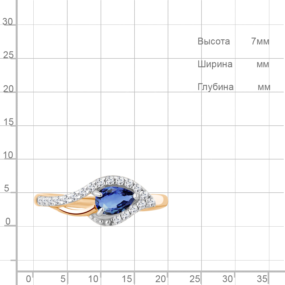 600210АБ Кольцо из Серебра с наносапфиром, фианитами