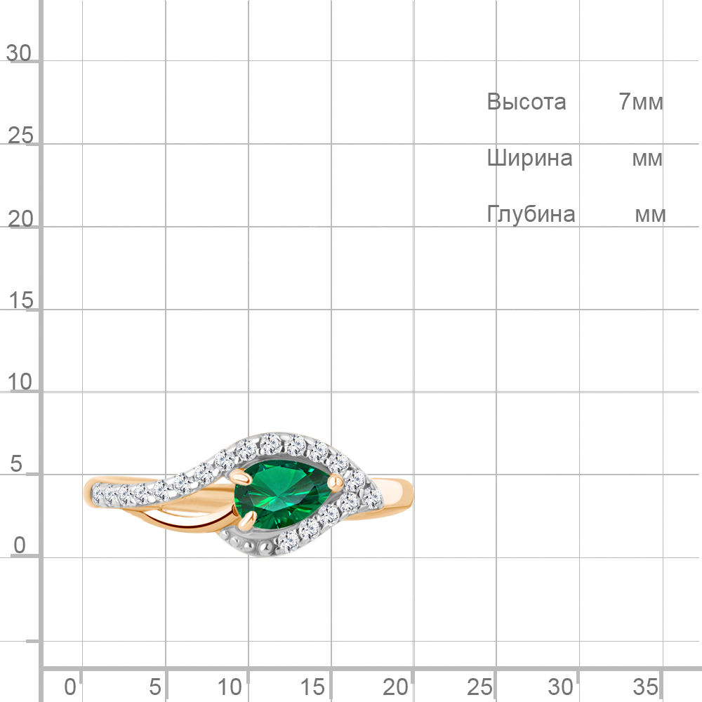 600210АГ Кольцо из Серебра с наноизумрудом, фианитами