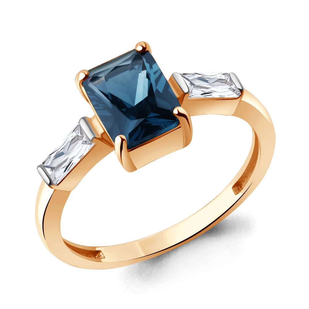 60029693 Кольцо из Серебра с нанотопазом лондон, фианитами