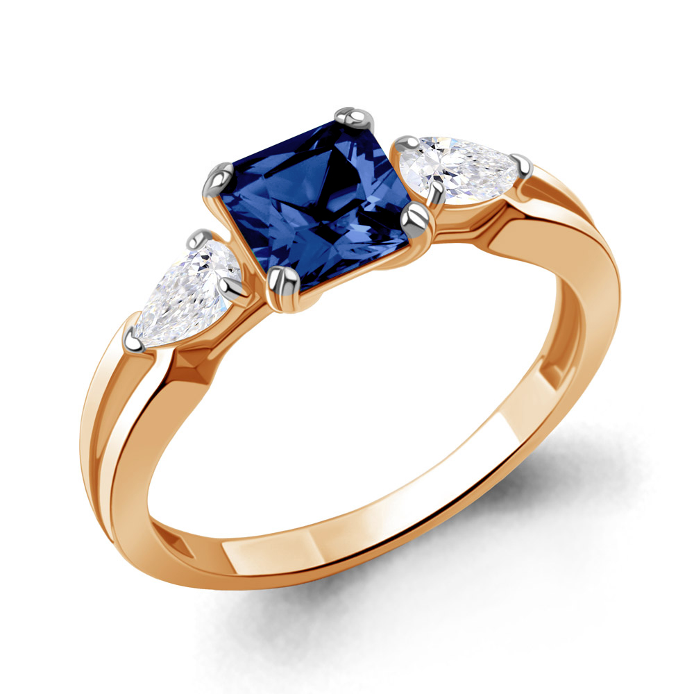 600355Н Кольцо из Серебра с наносапфиром, фианитами