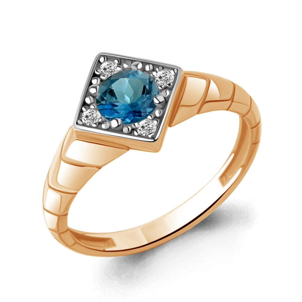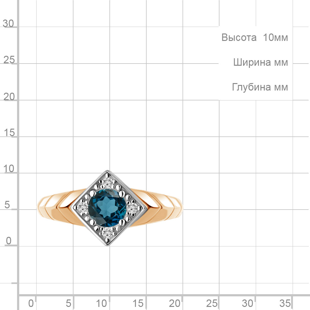 60045008А Кольцо из Серебра с топазом лондон блю, фианитами