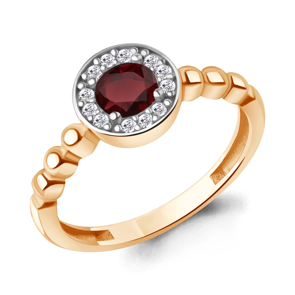60045103А Кольцо из Серебра с гранатом, фианитами