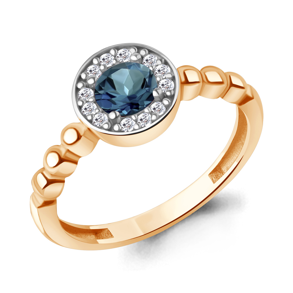 60045108А Кольцо из Серебра с топазом лондон блю, фианитами