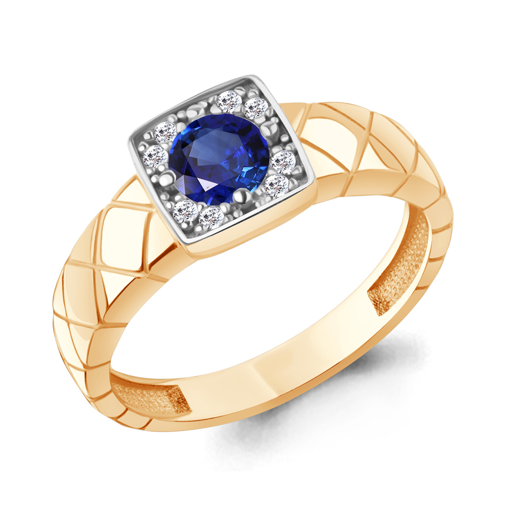 600452АБ Кольцо из Серебра с наносапфиром, фианитами