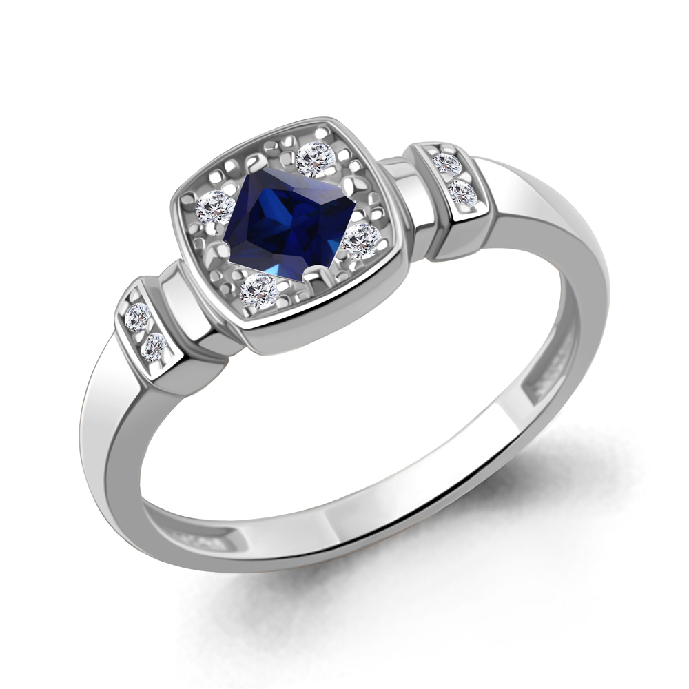600454АБ Кольцо из Серебра с наносапфиром, фианитами