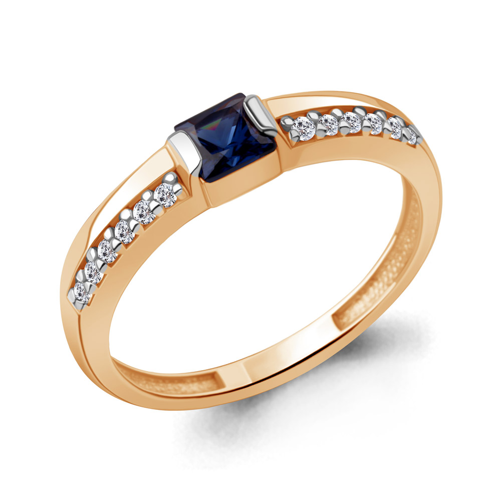 600501АБ Кольцо из Серебра с наносапфиром, фианитами