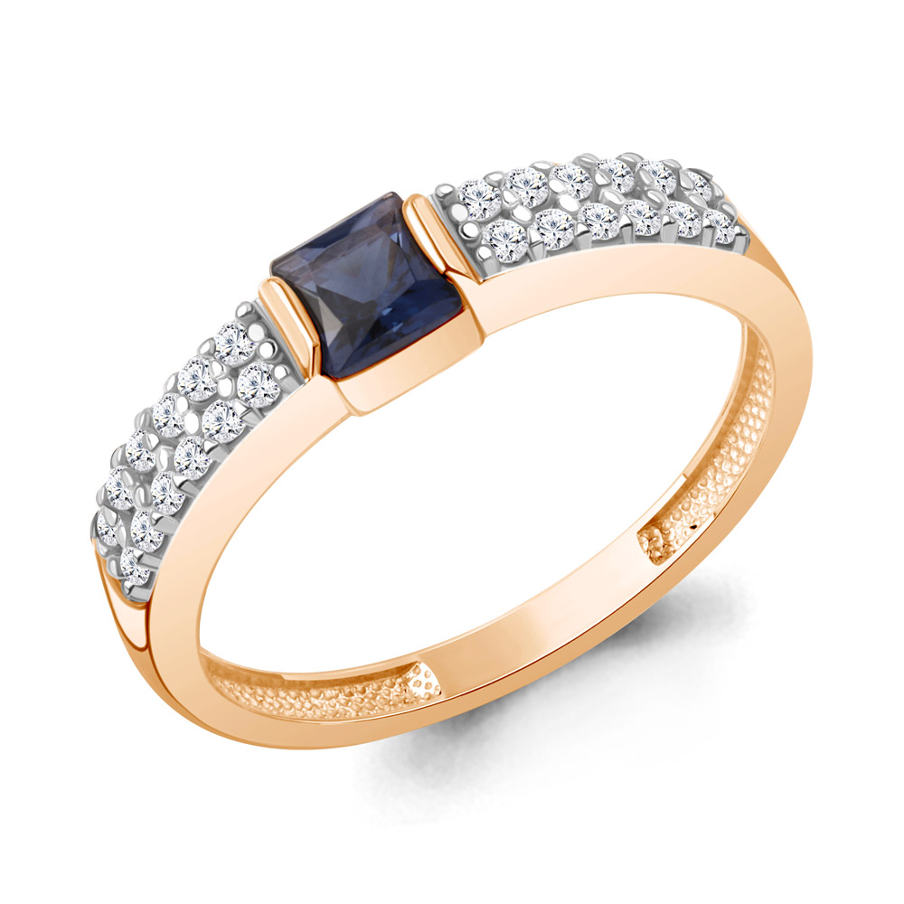 600502АБ Кольцо из Серебра с наносапфиром, фианитами