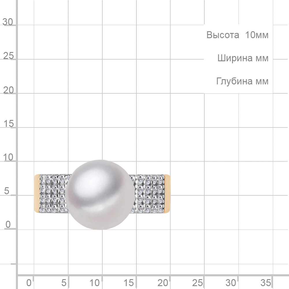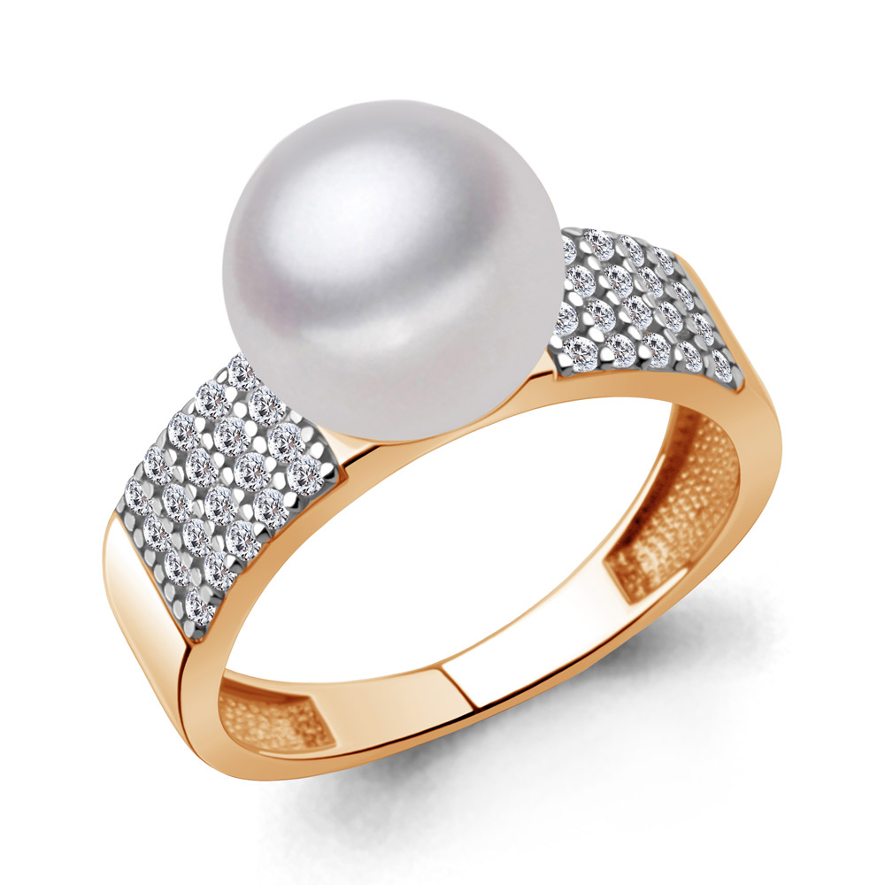 600549А Кольцо из Серебра с фианитами, хрустальным жемчугом
