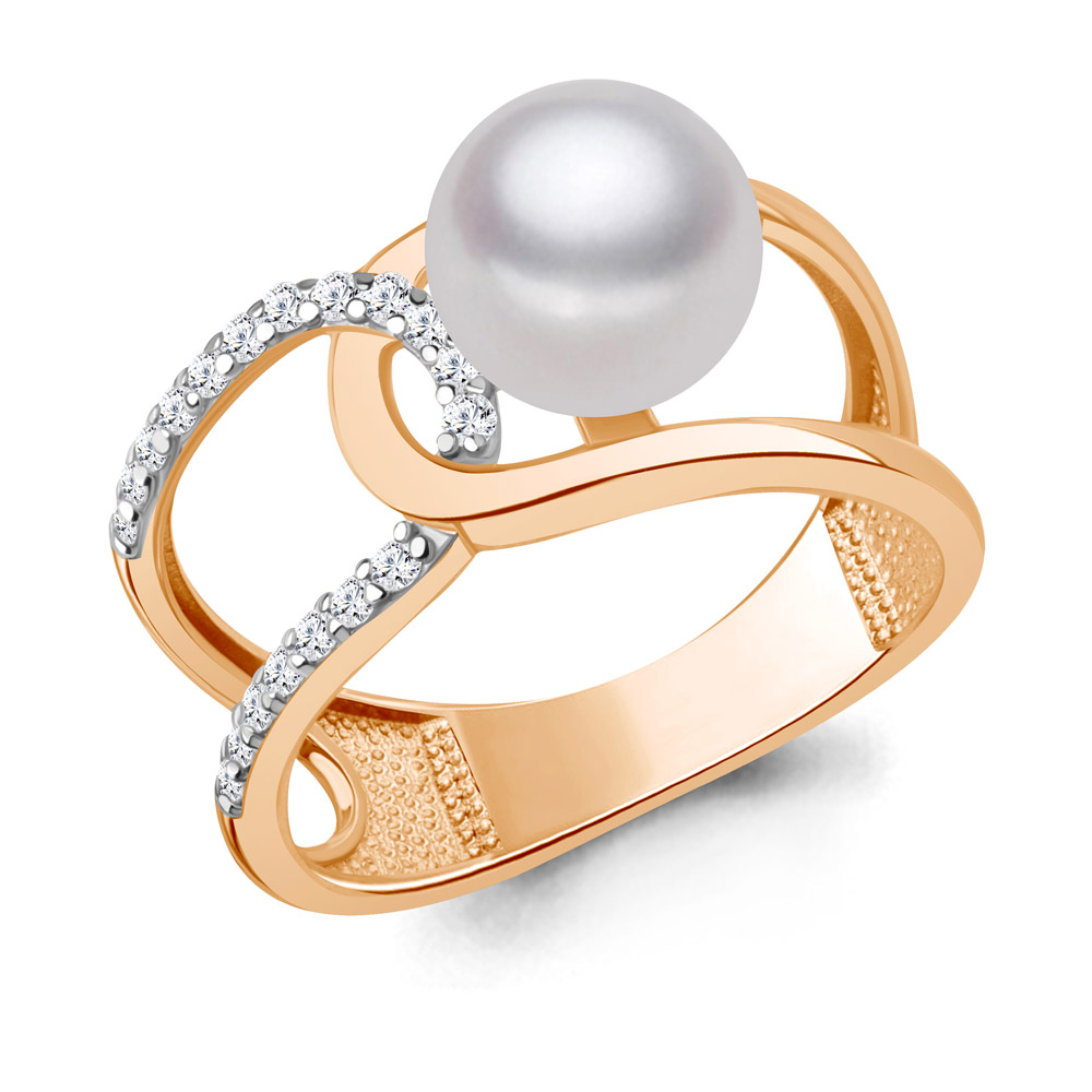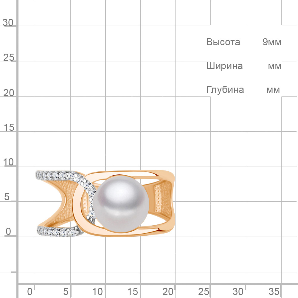 600553А Кольцо из Серебра с имитацией жемчуга, фианитами