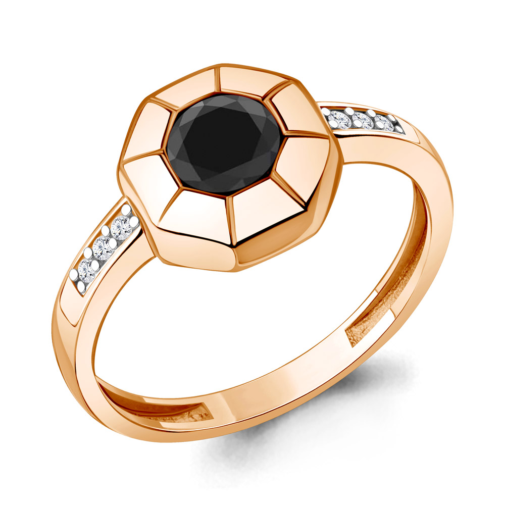 600647АЧ Кольцо из Серебра с стеклом, фианитами