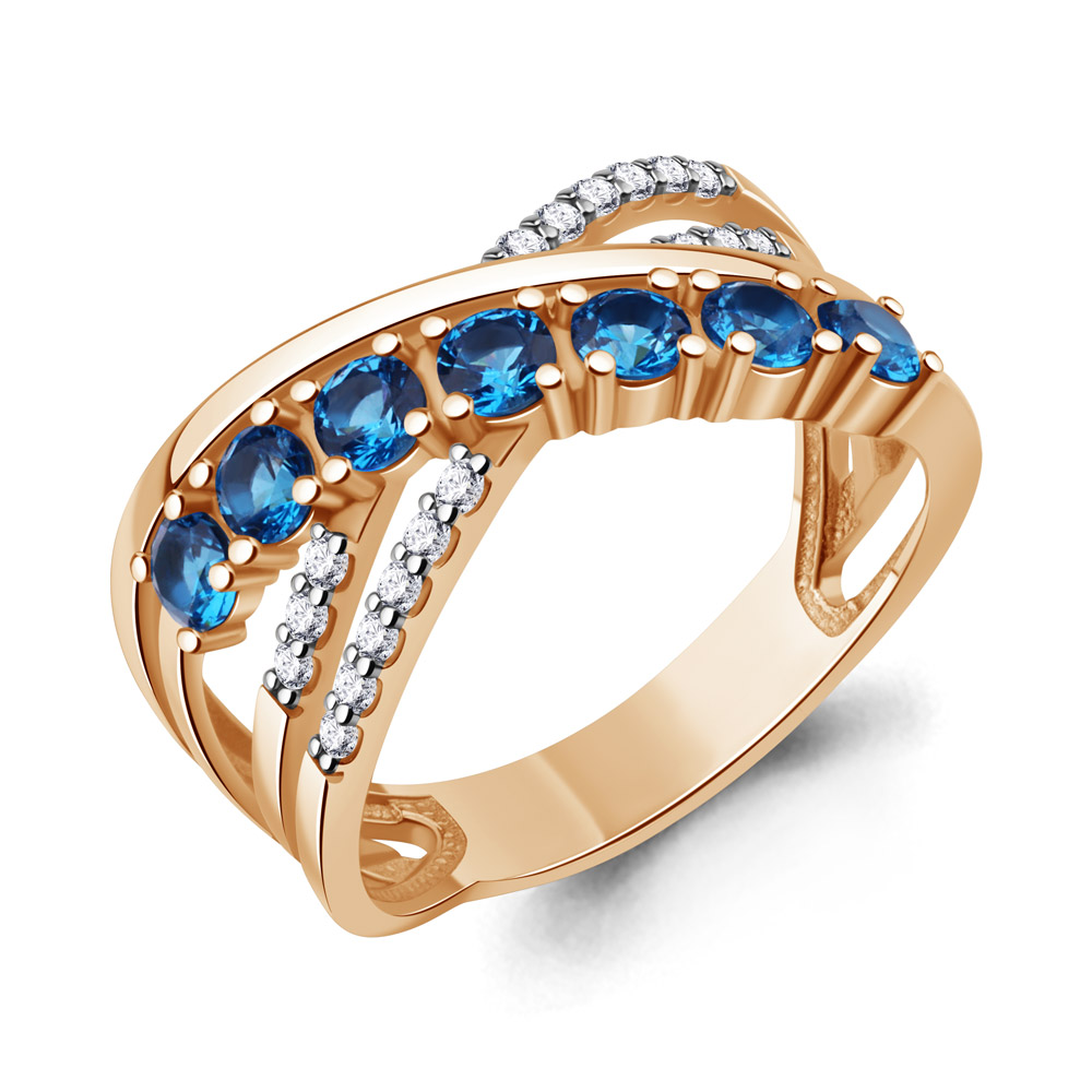600650АБ Кольцо из Серебра с нанотопазами, фианитами