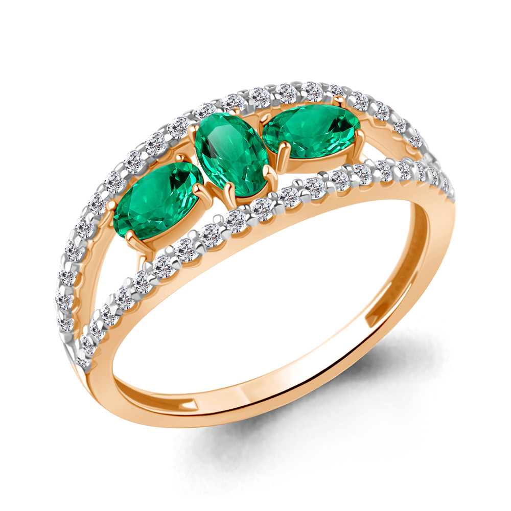 600755АГ Кольцо из Серебра с наноизумрудами, фианитами