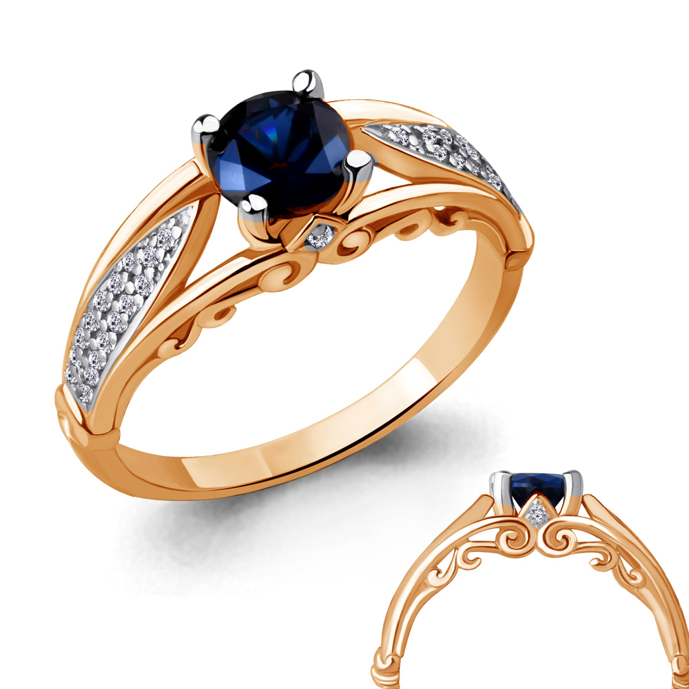 63975Б Кольцо из Серебра с наносапфиром, фианитами из коллекции "Клеопатра"