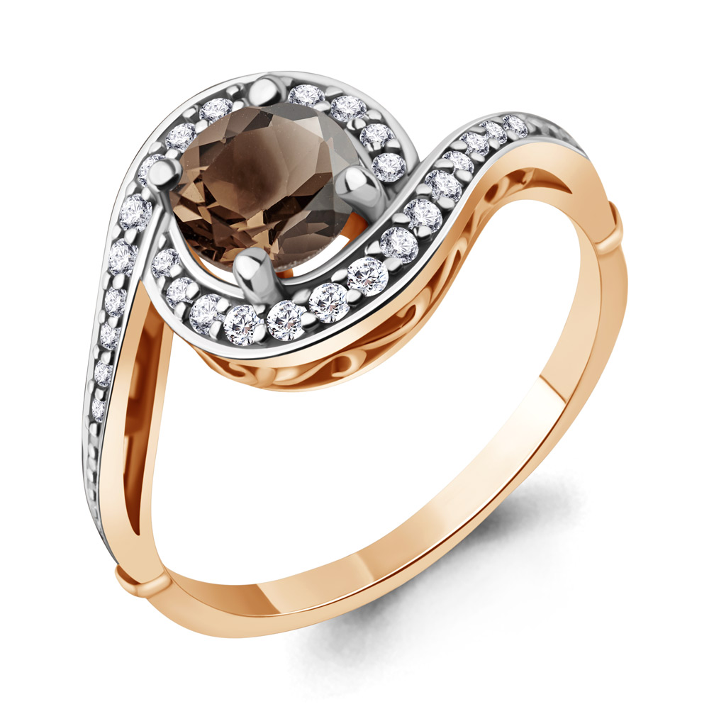 6398501А Кольцо из Серебра с кварцем дымчатым, фианитами