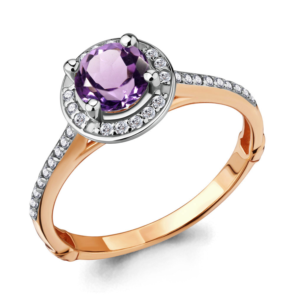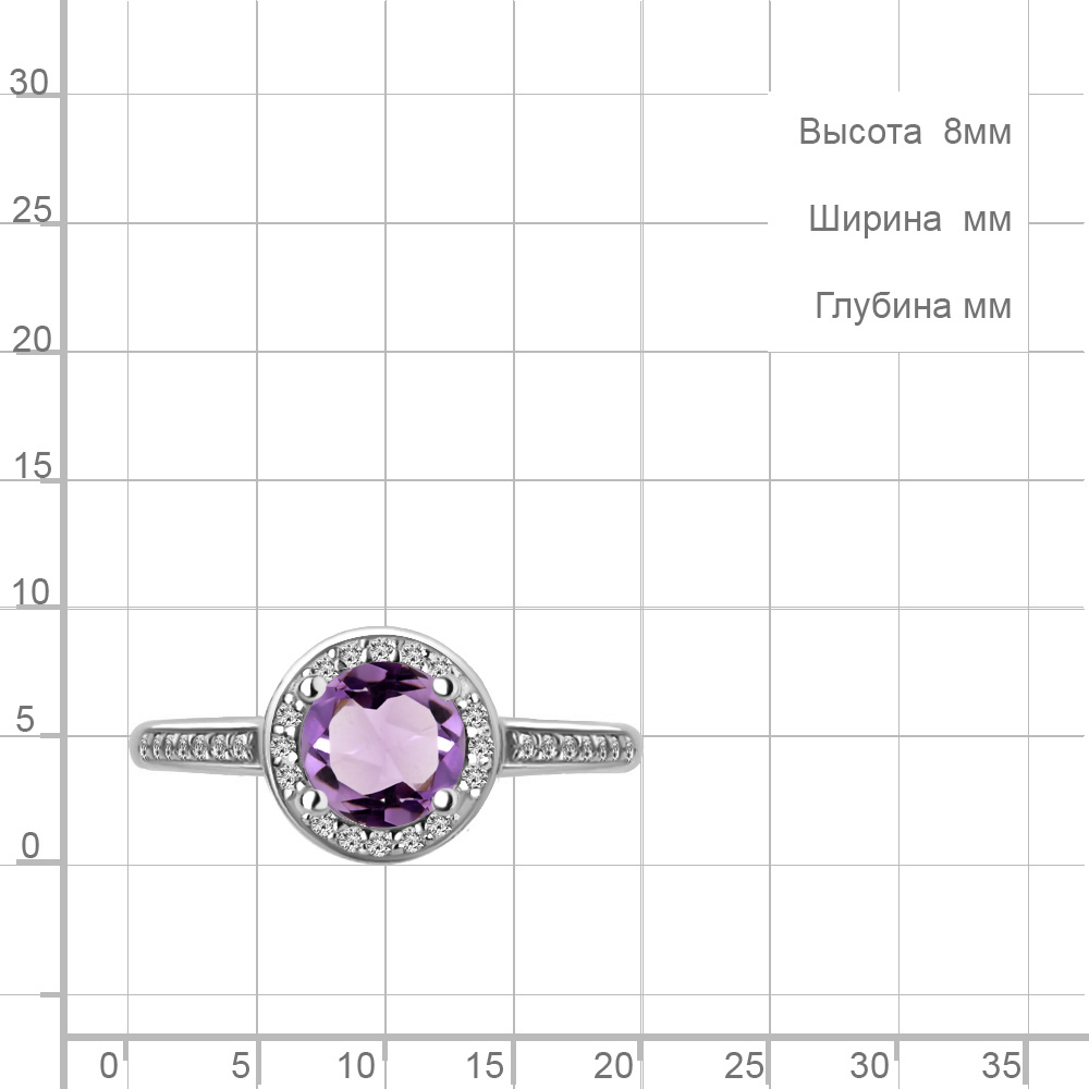 6398904А Кольцо из Серебра с аметистом, фианитами
