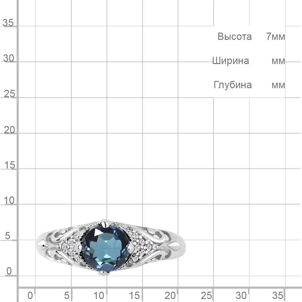 Описание камней 1 Топаз Лондон Блю; 6 Фианит; 10 Фианит