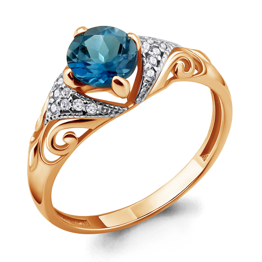 6399308А Кольцо из Серебра с топазом лондон блю, фианитами