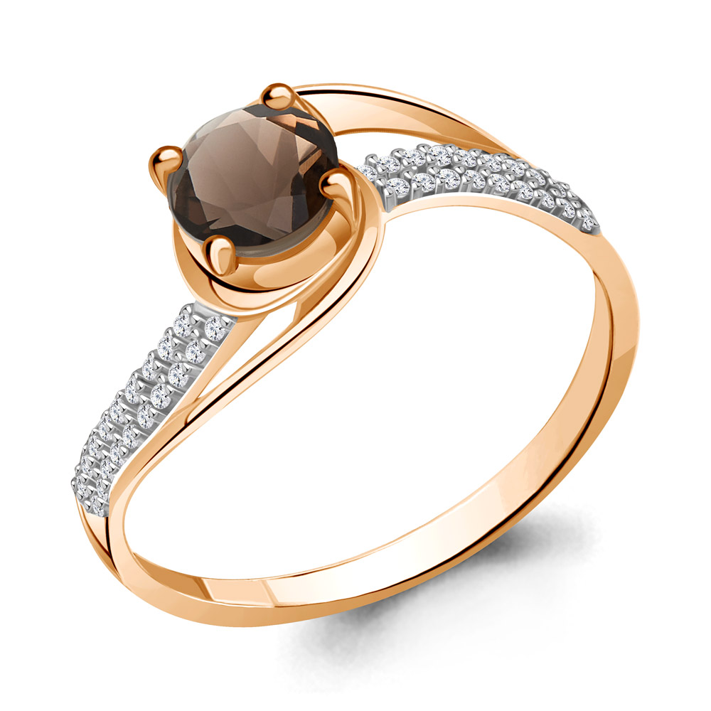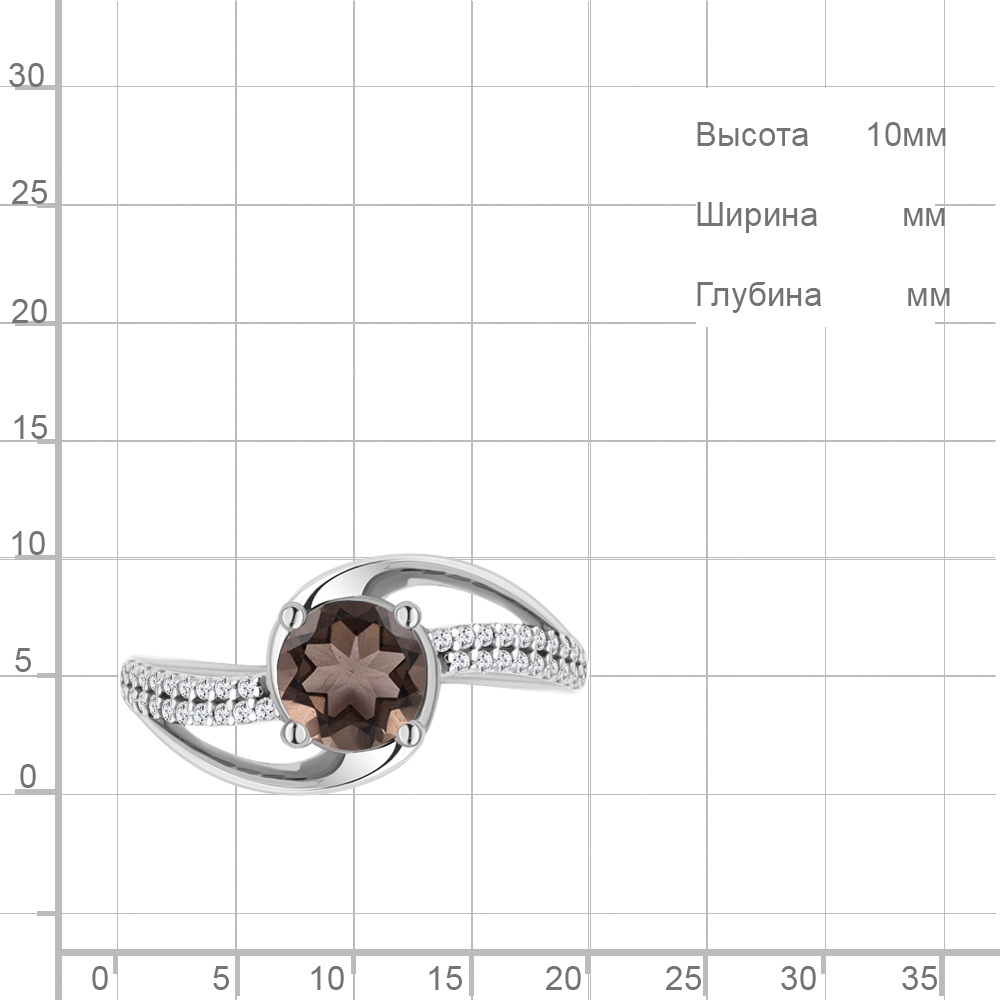 6399601А Кольцо из Серебра с кварцем дымчатым, фианитами