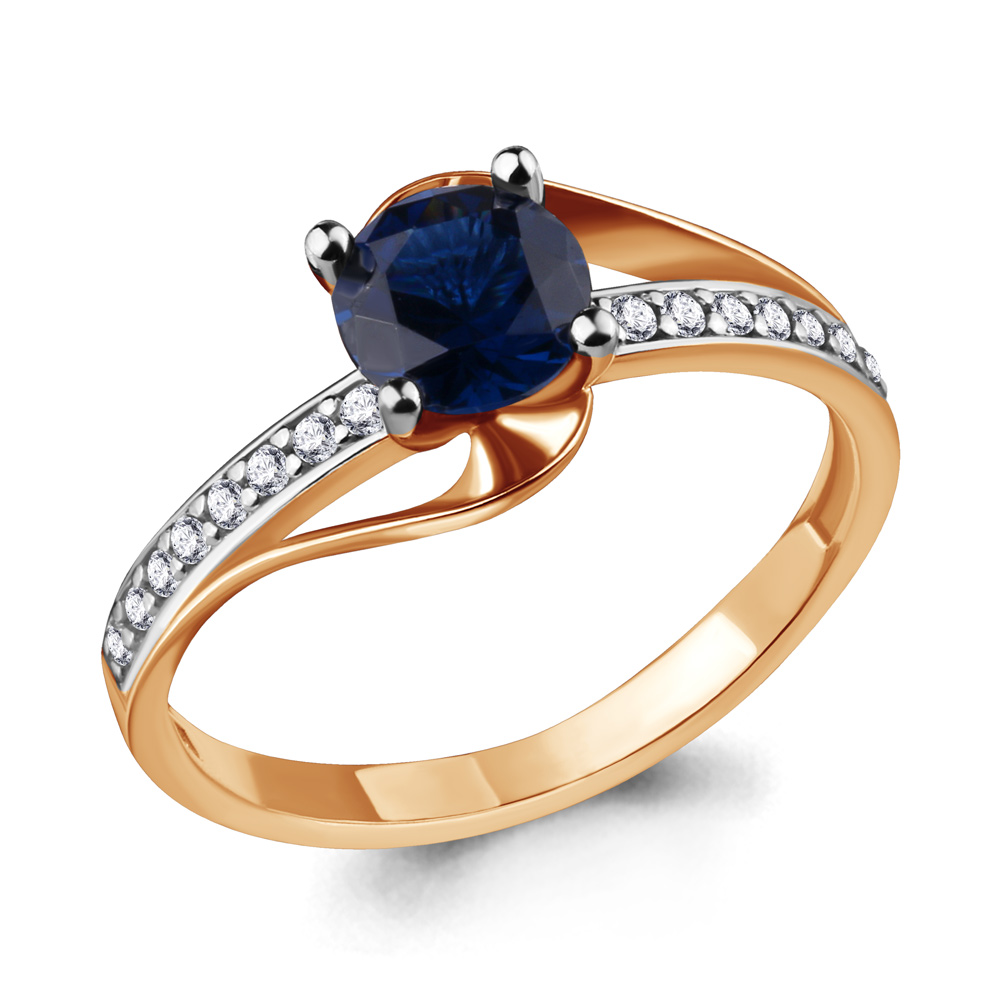63997Б Кольцо из Серебра с наносапфиром, фианитами из коллекции "Клеопатра"