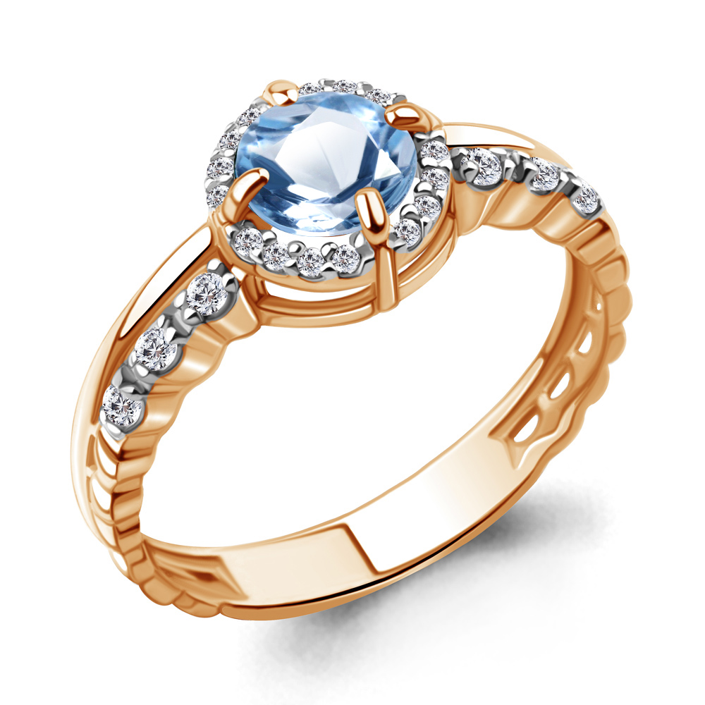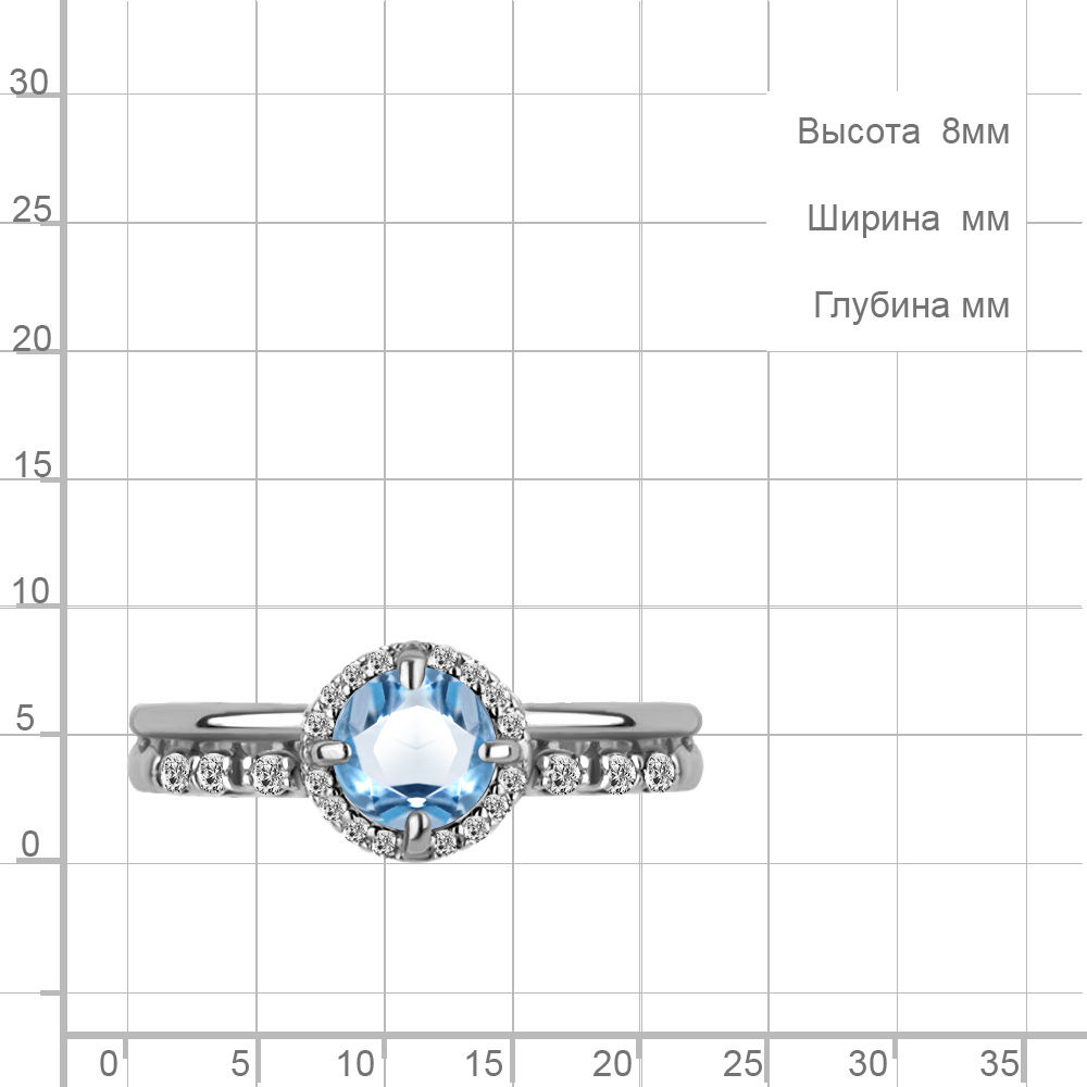 6449205А Кольцо из Серебра с топазом свисс блю, фианитами