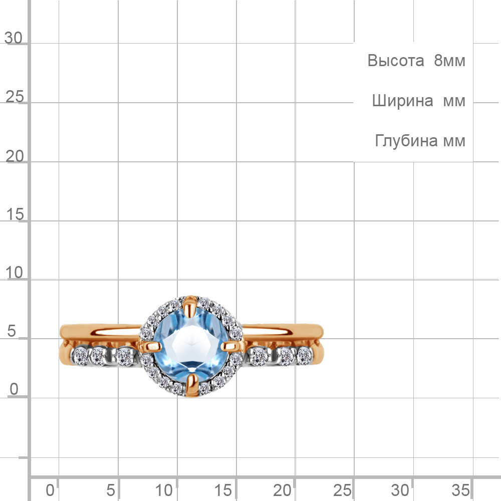Описание камней 1 Топаз Свисс Блю; 16 Фианит; 6 Фианит