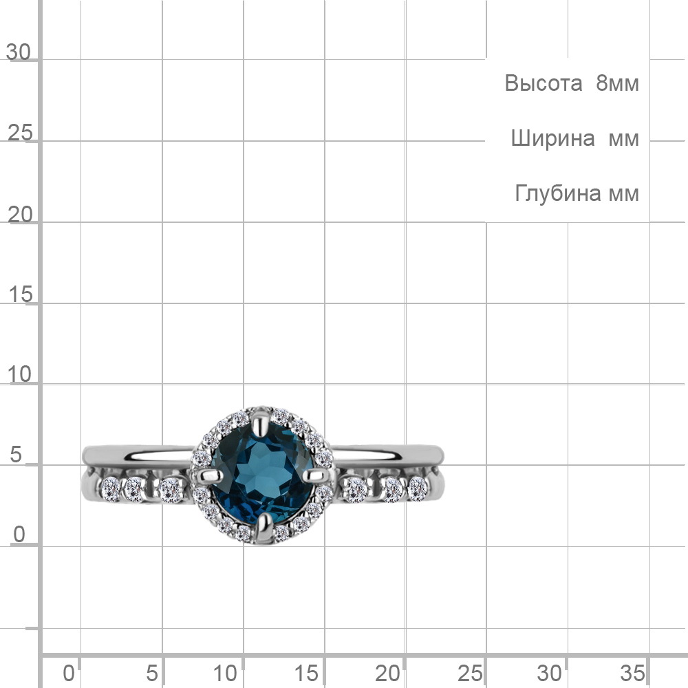 6449208А Кольцо из Серебра с топазом лондон блю, фианитами