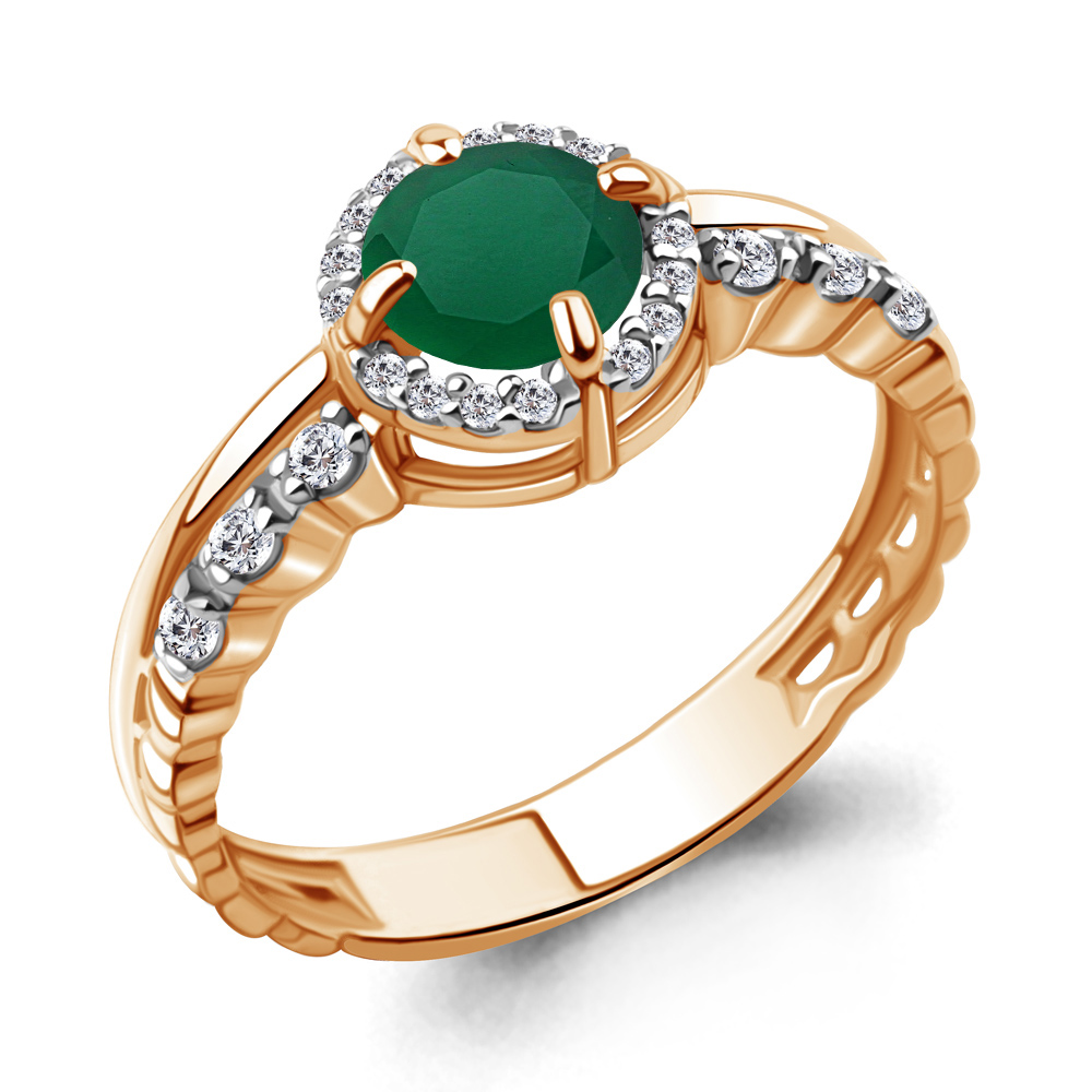 6449209А Кольцо из Серебра с агатом, фианитами