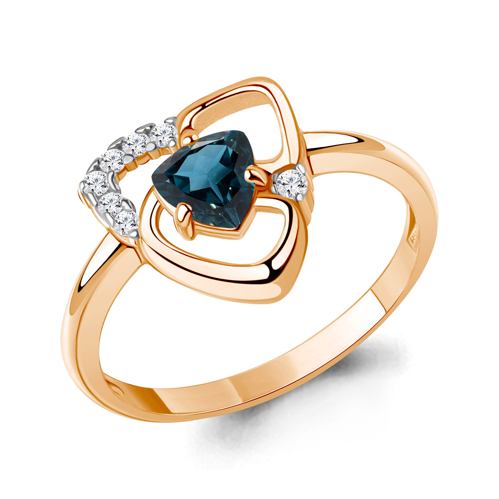 65002808А Кольцо из Серебра с топазом лондон блю, фианитами