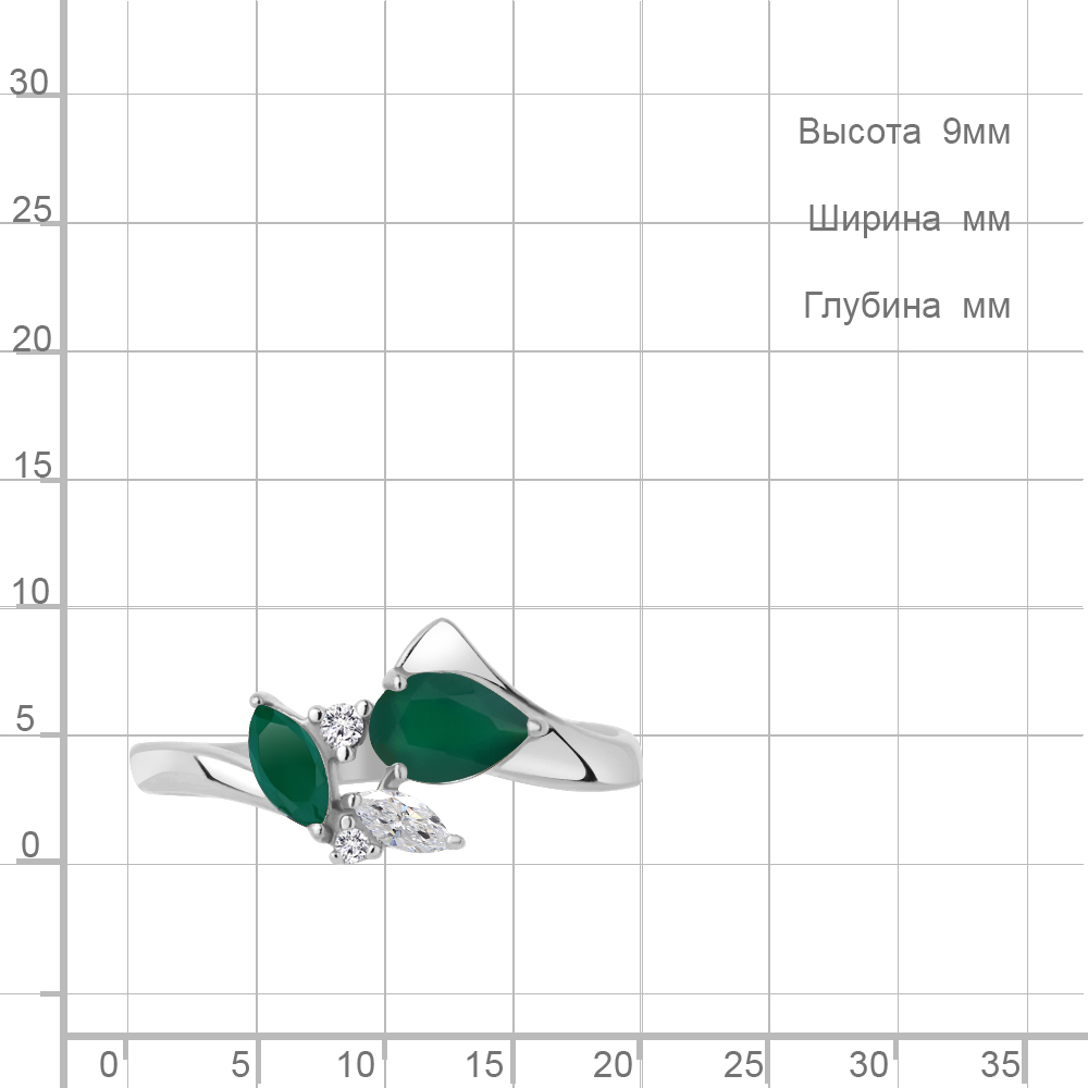 Описание камней 1 Агат зеленый; 1 Агат зеленый; 1 Фианит; 1 Фианит; 1 Фианит