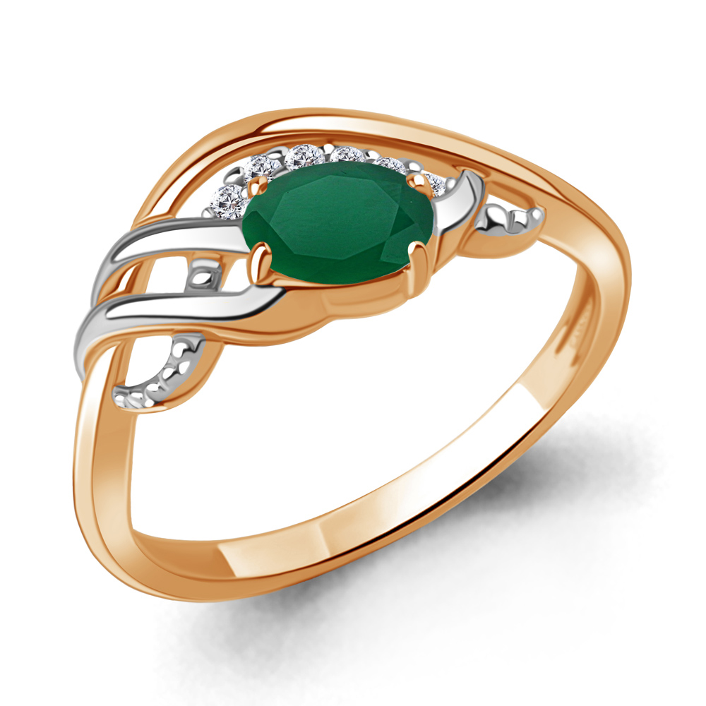 65004409А Кольцо из Серебра с агатом, фианитами