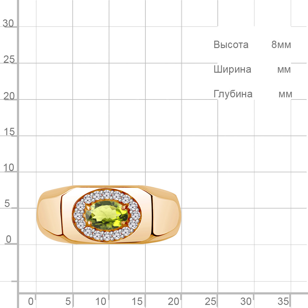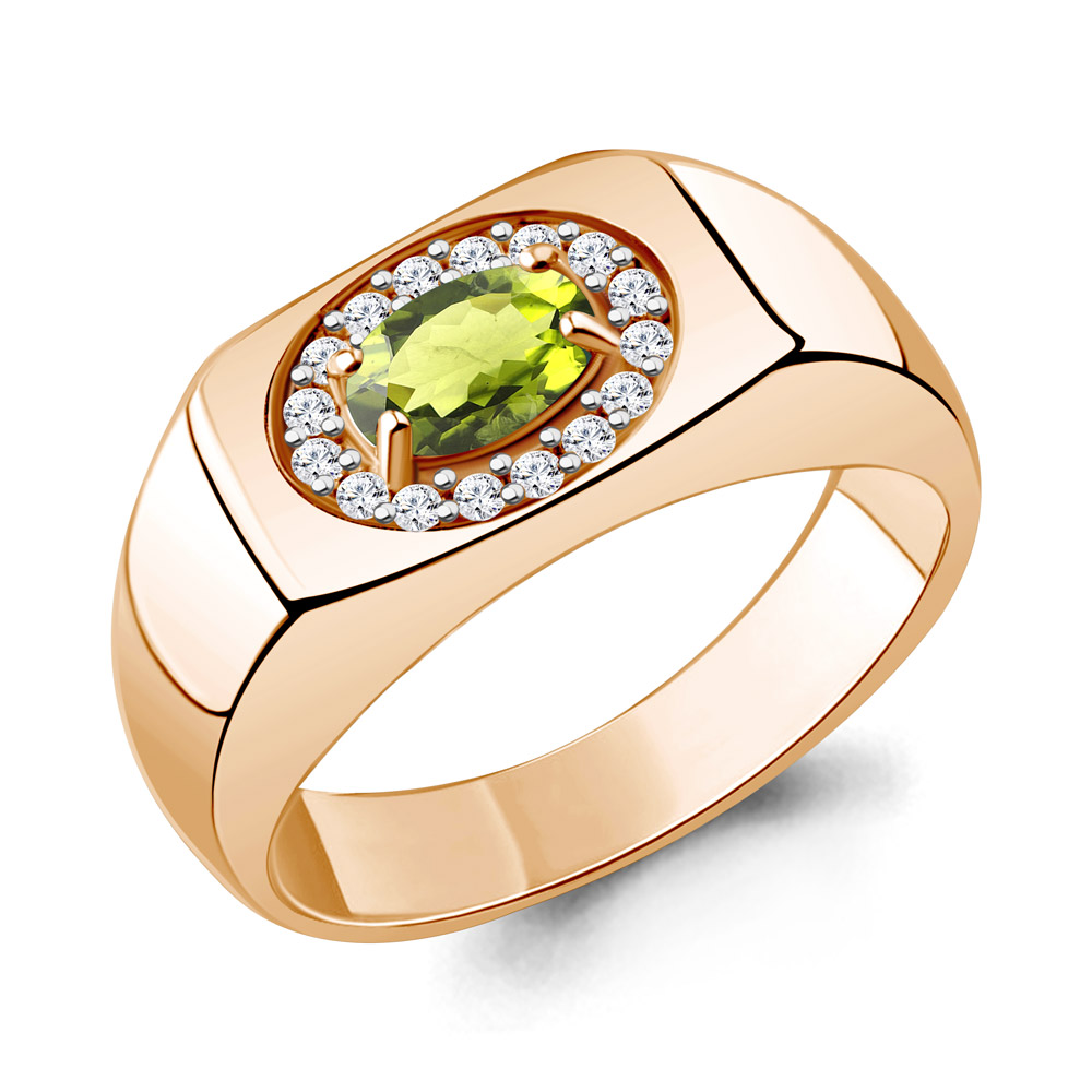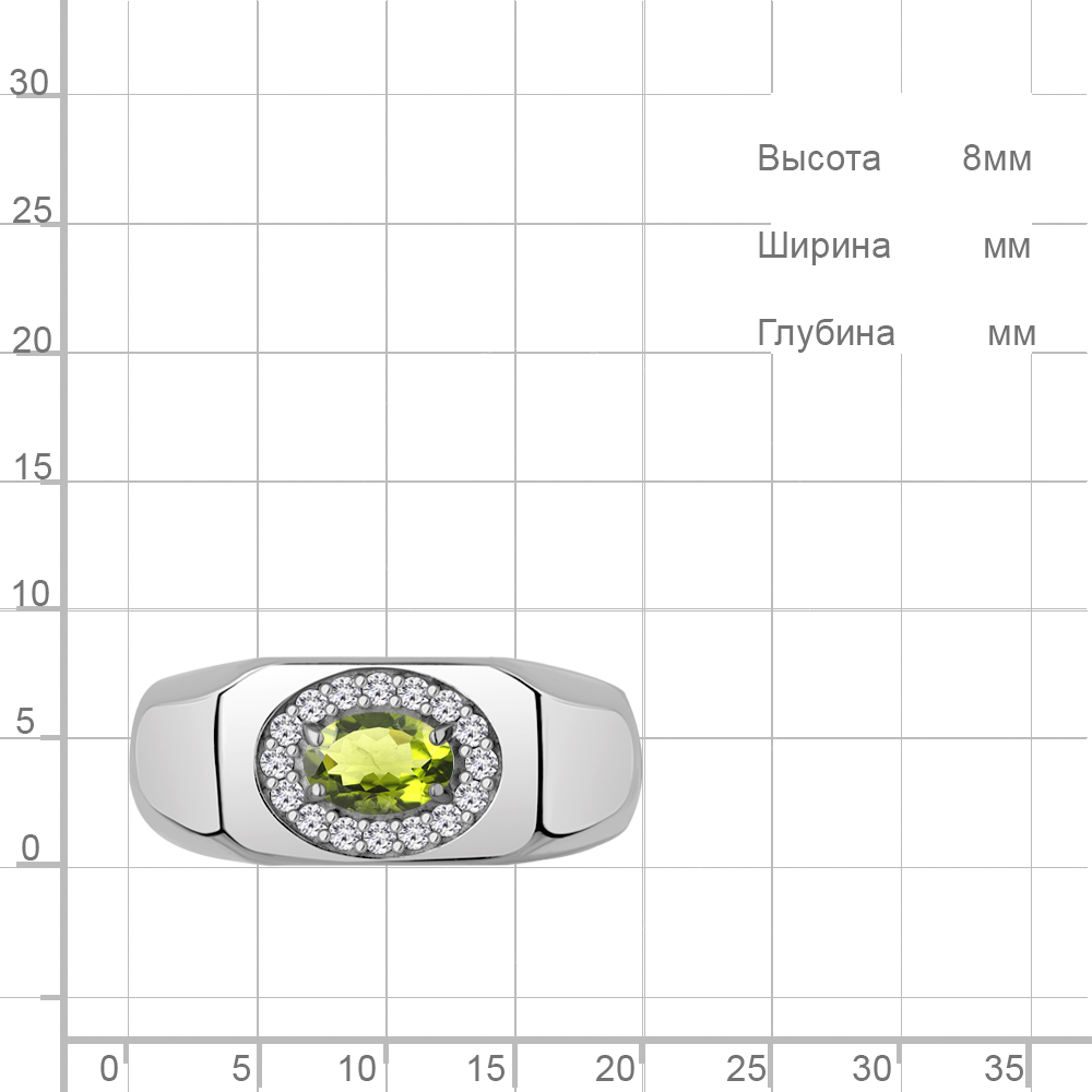 65007407А Кольцо из Серебра с фианитами, хризолитом