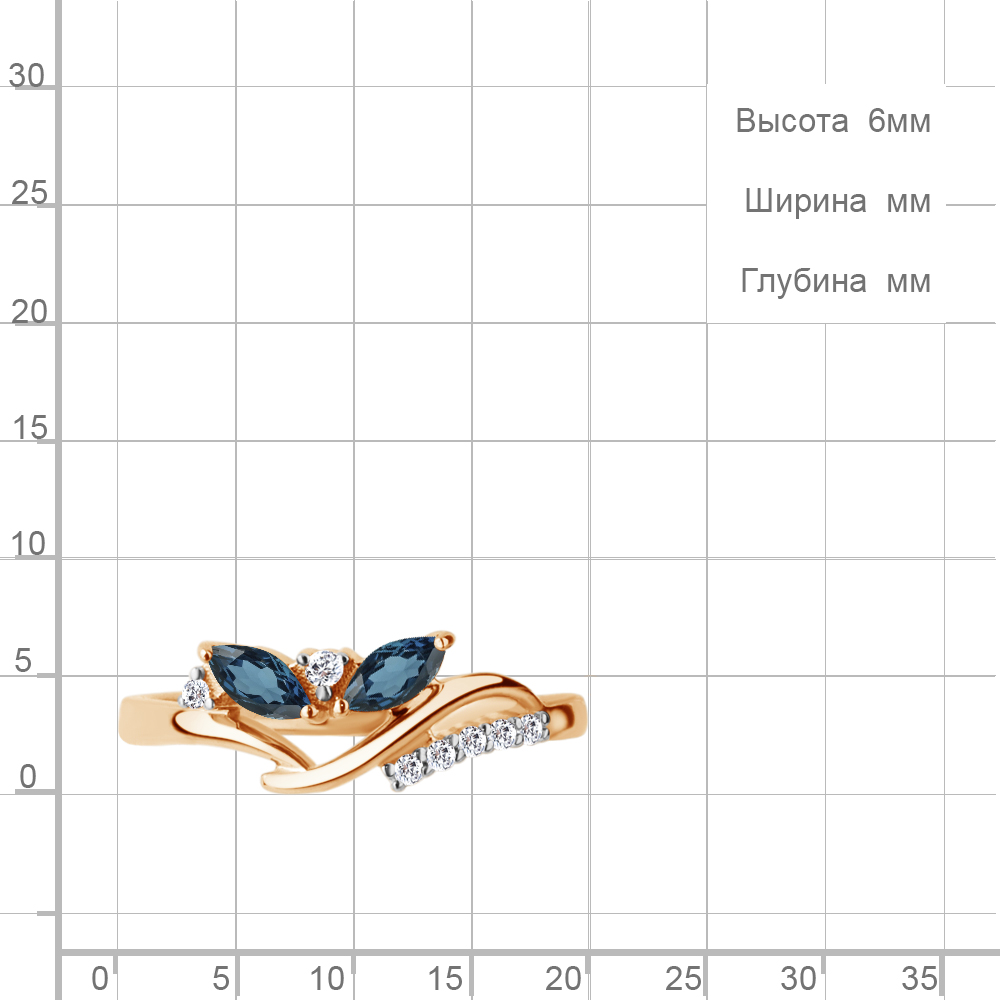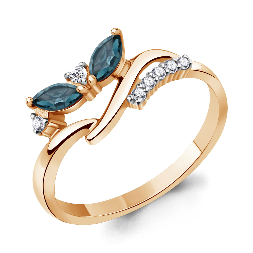 65008808А Кольцо из Серебра с топазами лондон блю, фианитами