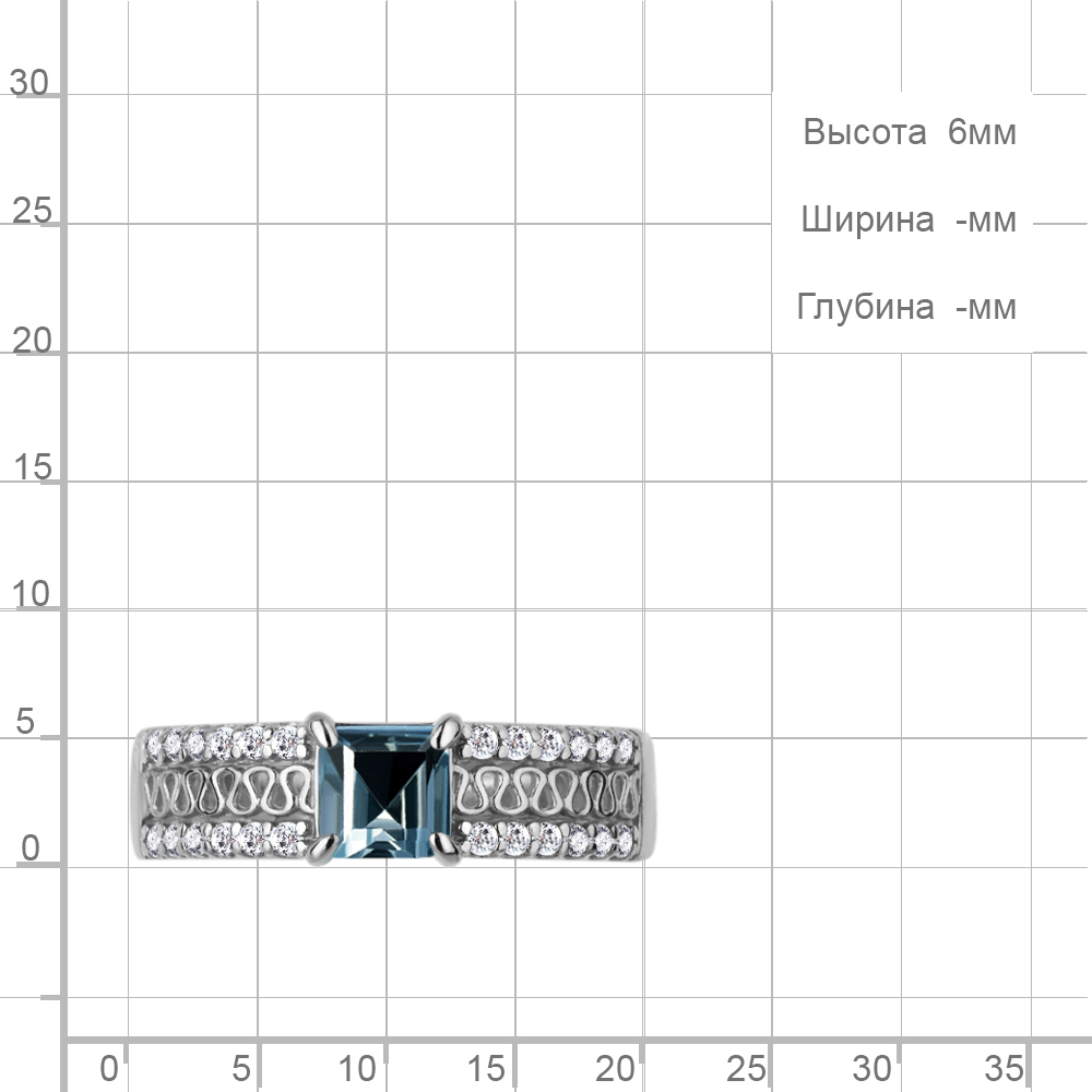 65009108А Кольцо из Серебра с топазом лондон блю, фианитами
