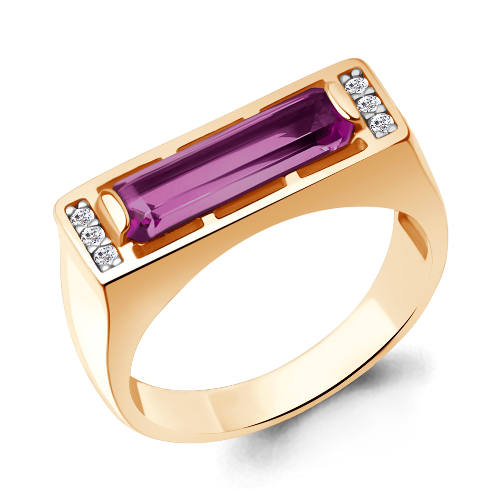 65009784А Кольцо из Серебра с наноаметистом иск., фианитами