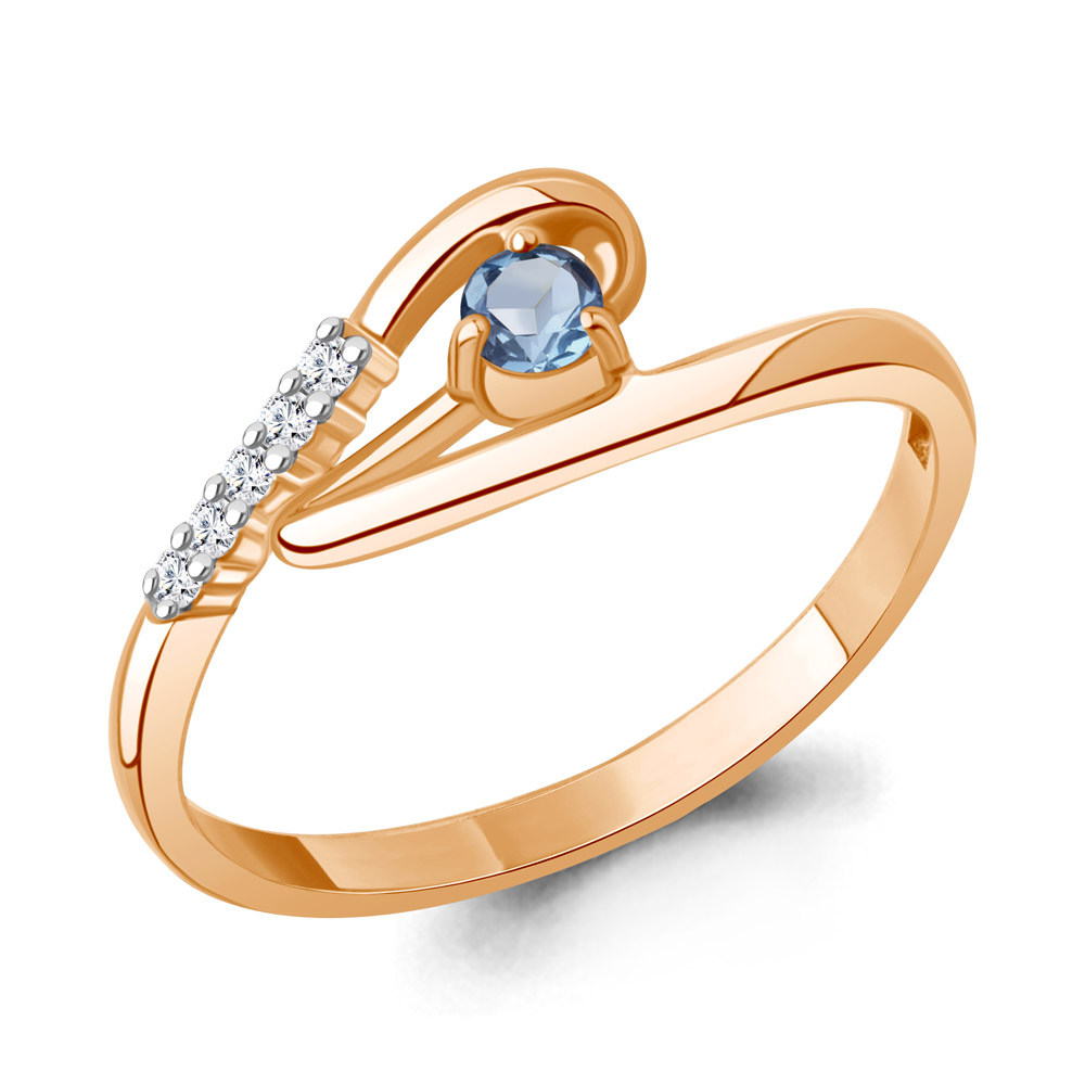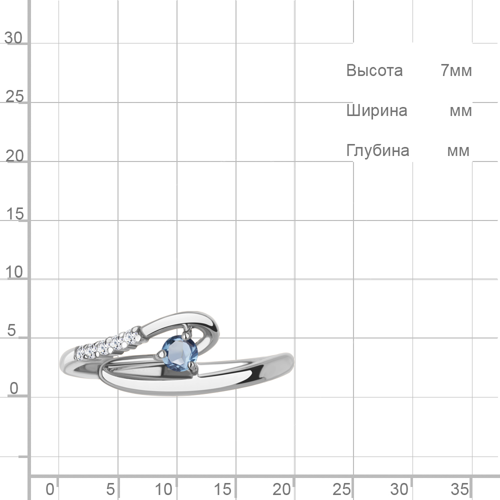 65010705А Кольцо из Серебра с топазом свисс блю, фианитами