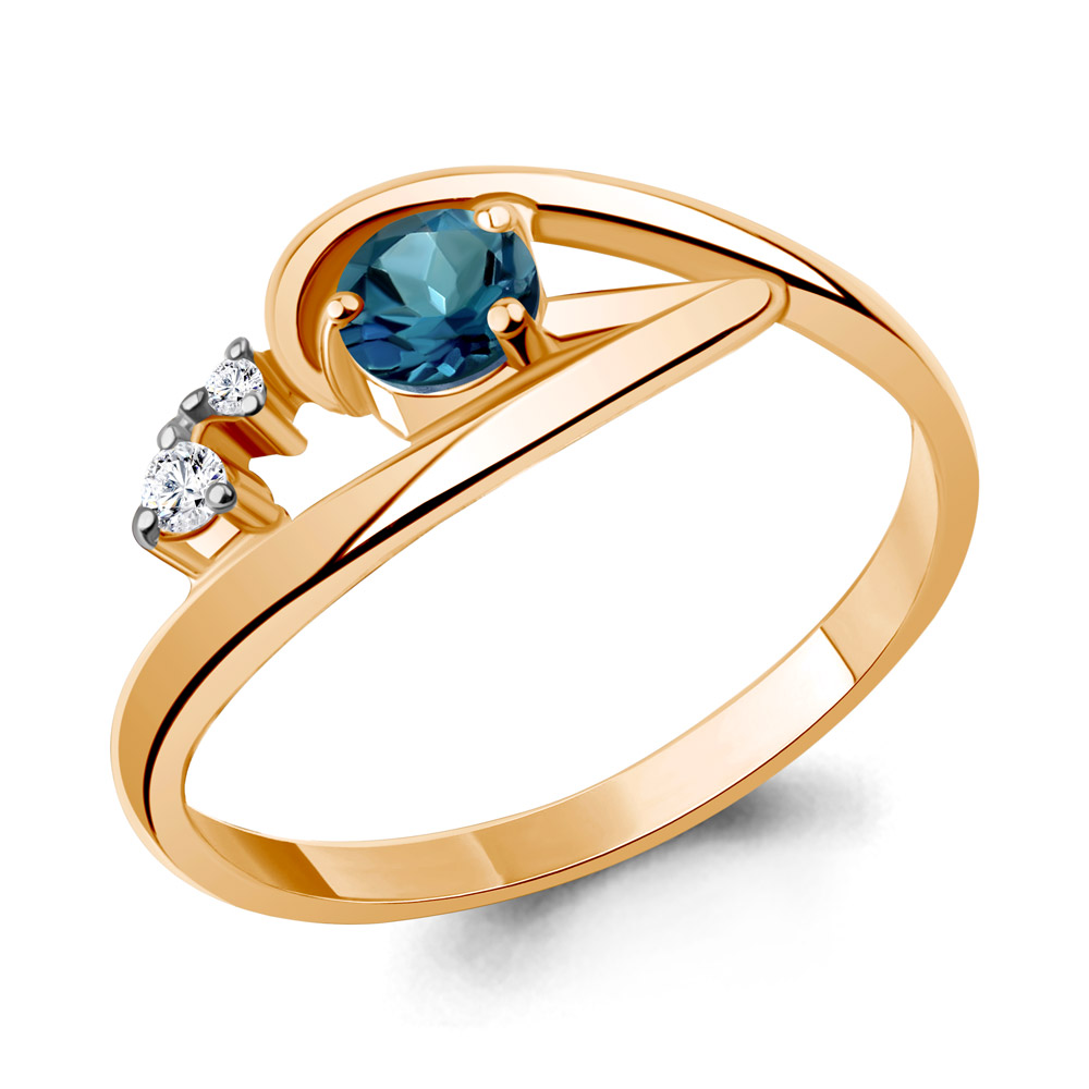 65010808А Кольцо из Серебра с топазом лондон блю, фианитами